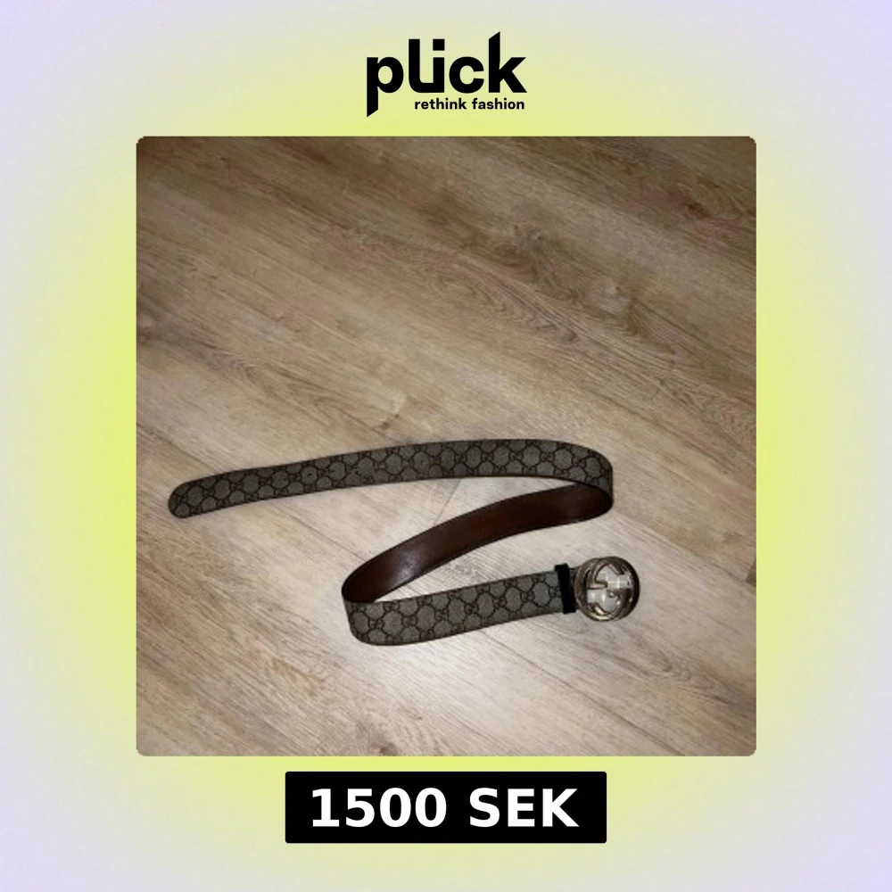 Säljer ett stilrent Gucci bälte med det klassiska GG-mönstret. Bältet har en elegant brun insida och en iögonfallande silverspänne med GG-logotypen. Perfekt för att ge din outfit en lyxig touch. Strl 95