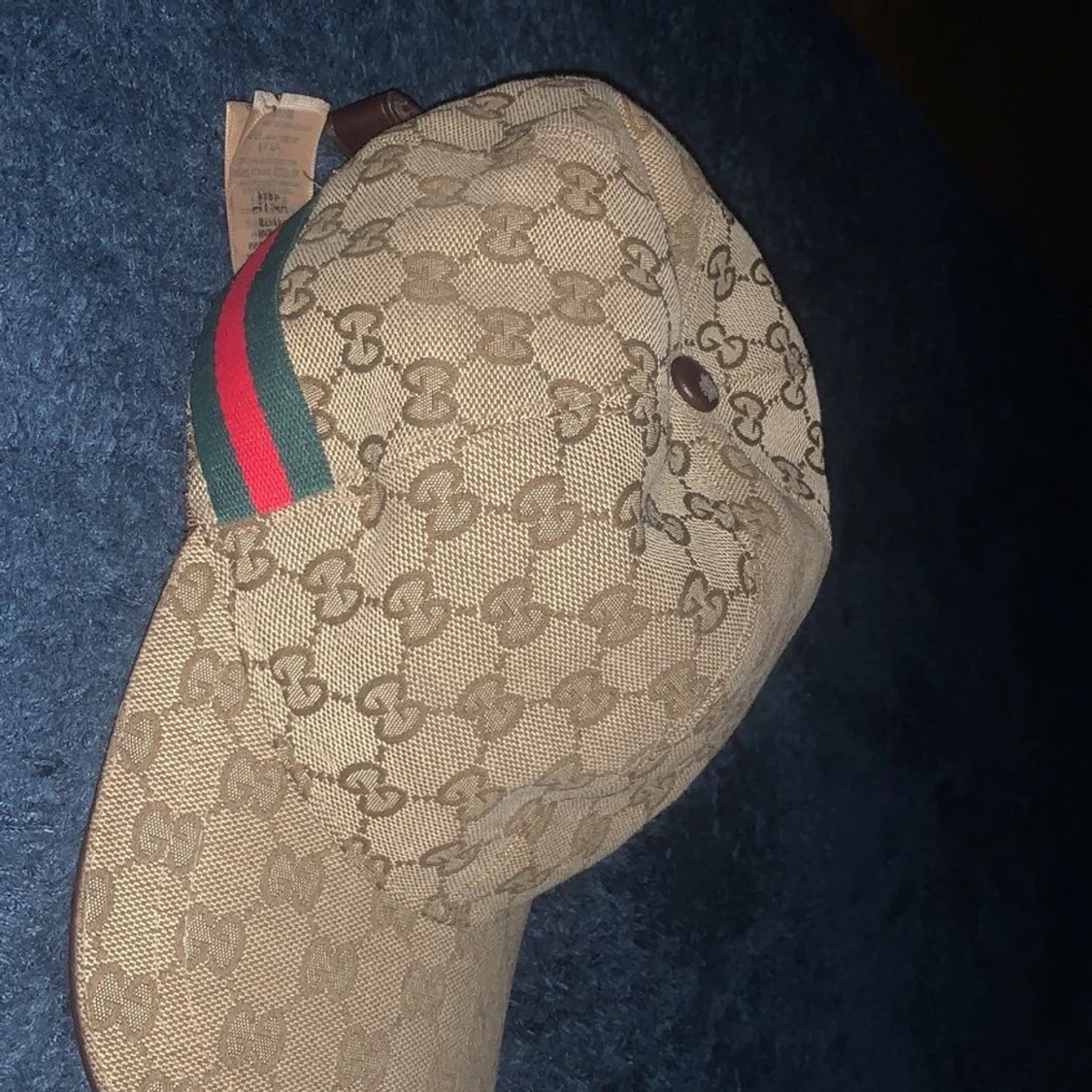 Snygg keps från Gucci i beige med klassiskt GG-monogram över hela kepsen. Justerbar rem baktill i brunt skinn och diskreta gröna och röda detaljer på sidorna. Tillverkad i bomullscanvas med exklusiv känsla, perfekt för dig som vill sticka ut. Frågor svaras via dm./ mvh