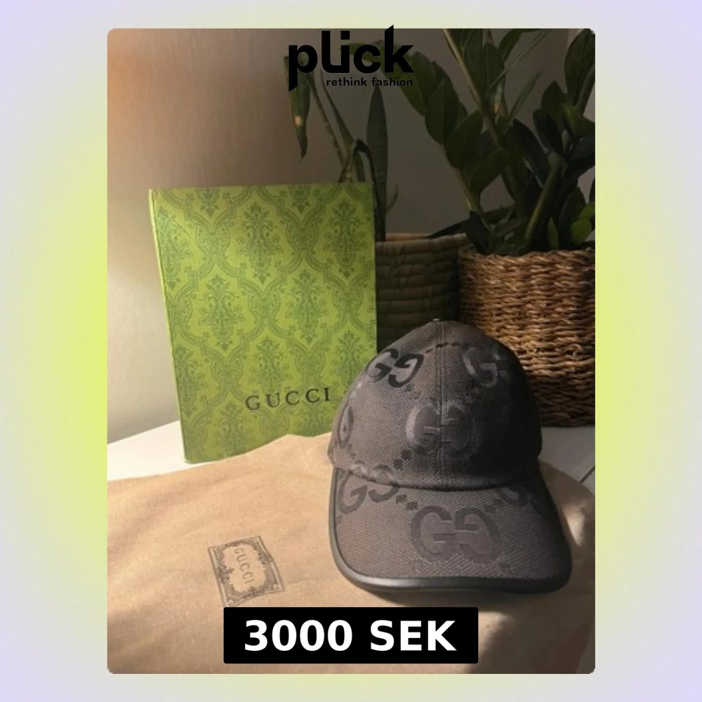 KAN DISKUTERA PRISET PRIVAT Snygg svart keps från Gucci med klassiskt GG-mönster i mörkgrått. Justerbar rem bak i svart läder med metallspänne. Tillverkad i Italien och levereras med original dustbag och box. Perfekt för dig som vill ha en lyxig streetstyle-accessoar.