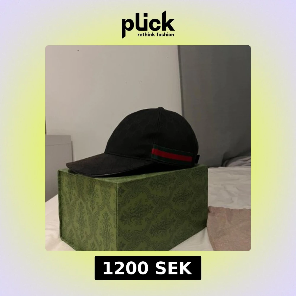 Svart keps från Gucci med diskret GG-monogram i tyget och klassiska gröna och röda ränder på sidan. Kepsen har böjd skärm och justerbar rem baktill. Tillverkad i Italien och levereras med originalförpackning och tags. SKRIV OM NÅN VILL VETA NÅTT MER OM KEPSEN ELLER BÄTTRE BILDER