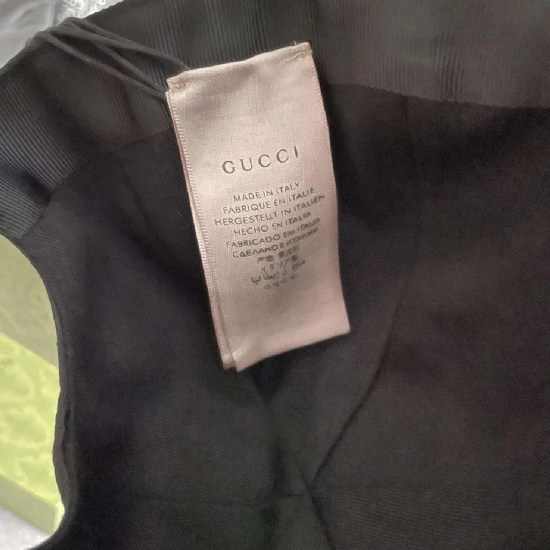 Snygg svart keps från Gucci med diskret GG-mönster och klassiska gröna och röda ränder på sidan. Kepsen har böjd skärm och justerbar passform. Perfekt accessoar för en trendig look.