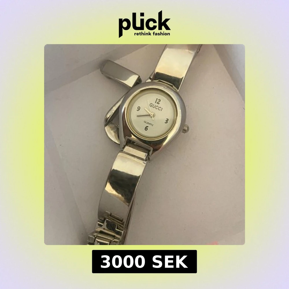 Säljer min fina vintage Gucci-klocka i rostfritt stål med silverfärgat metallarmband. Urtavlan har minimalistisk design med siffrorna 12/3/6/9 och diskret Gucci-logga. Klockan känns stabil och rejäl, utan rost eller färgsläpp, och har gravyr på baksidan. Det är en modell från 90-talet. Batteri behöver bytas, men allt annat fungerar som det ska. Pris kan diskuteras! 💫