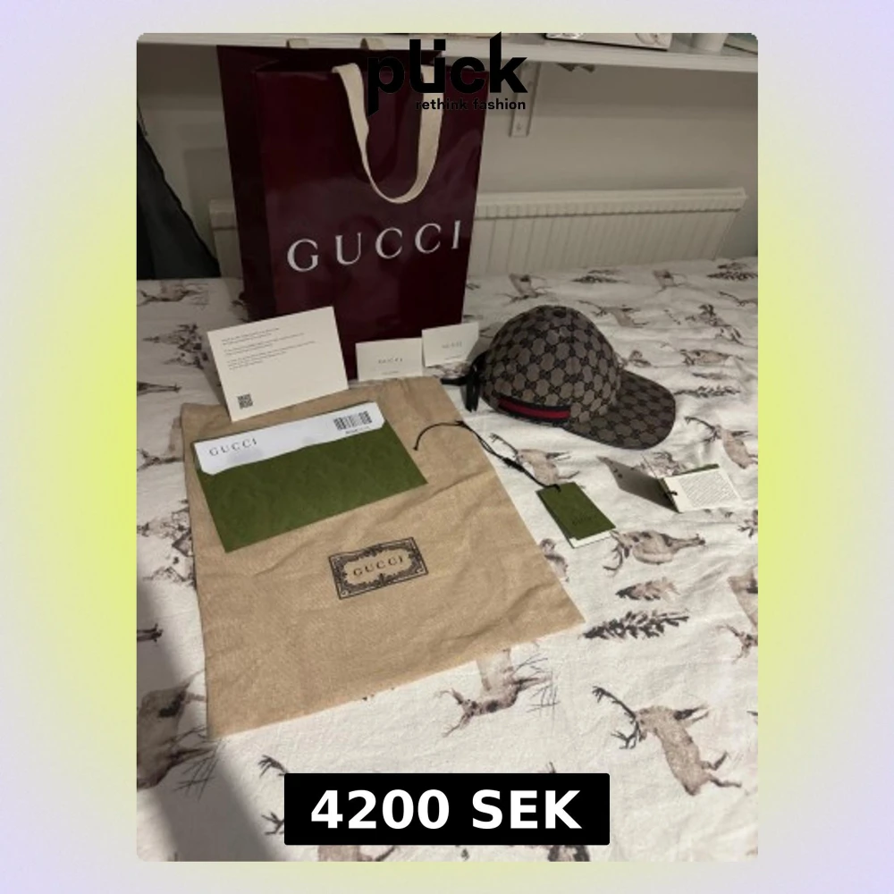 Snygg Gucci keps i klassisk GG grå och mörkblå färg. Kepsen har en böjd skärm, justerbar rem bak och en ikonisk röd-blå rand på sidan. Materialet är slitstark canvas med bomullsfoder. Perfekt för dig som vill ha en lyxig streetstyle-look. Kvitto, påse, dustbag, taggs, tack kort allt finns. Storlek XS