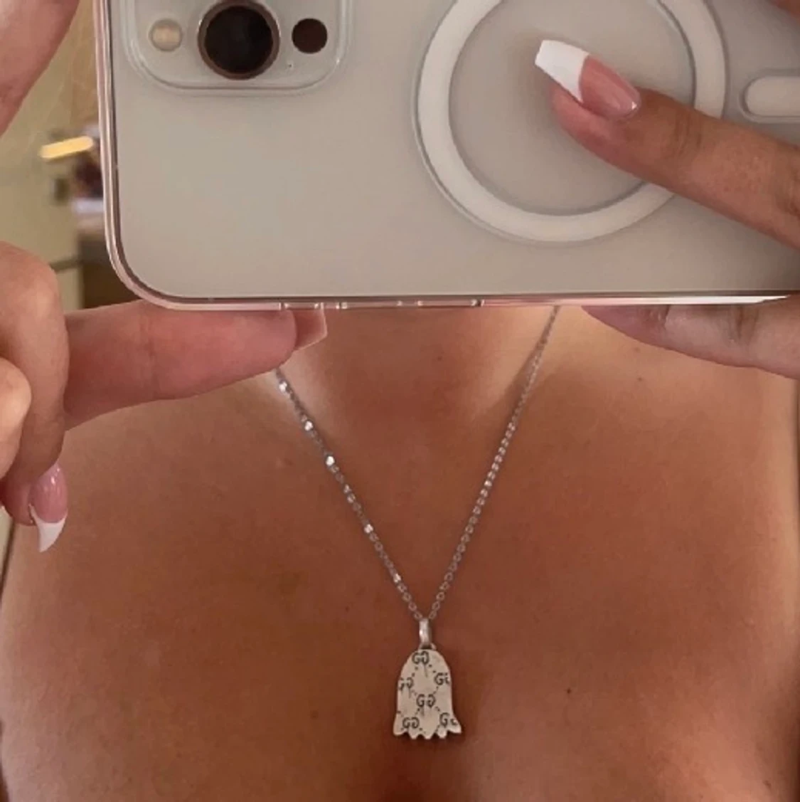 Säljer mitt superfina halsband från Gucci som liknar ett spöke! Självklart äkta finns stämpel! Har tyvärr inget kvitto då jag fick de i present för 1,5 år sen, nypris ligger på 3500🫶🏼💓💓
