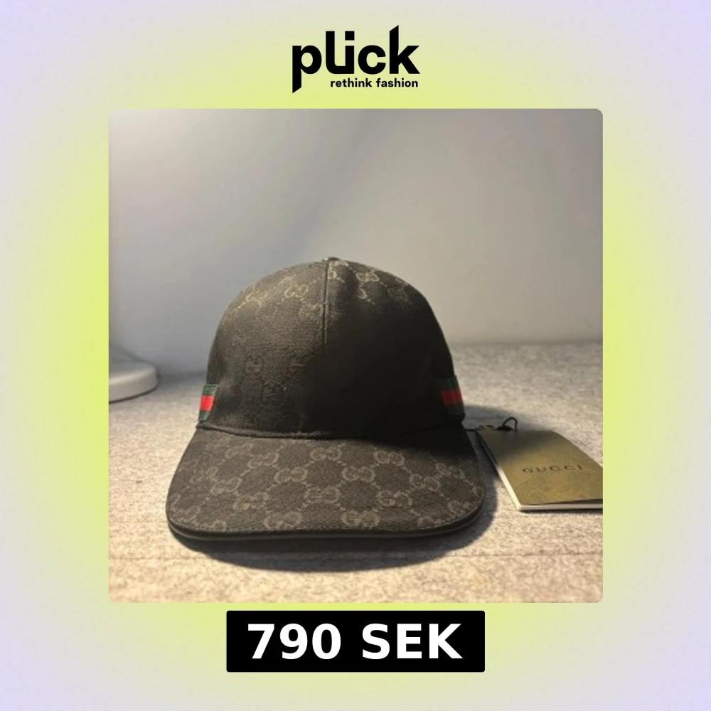 Skigka dm för video eller prisförslag. Svart keps från Gucci med klassiskt GG-monogram över hela kepsen och grönt/rött band på sidan. Böjd skärm och justerbar passform. Snygg och stilren accessoar med exklusiv känsla.