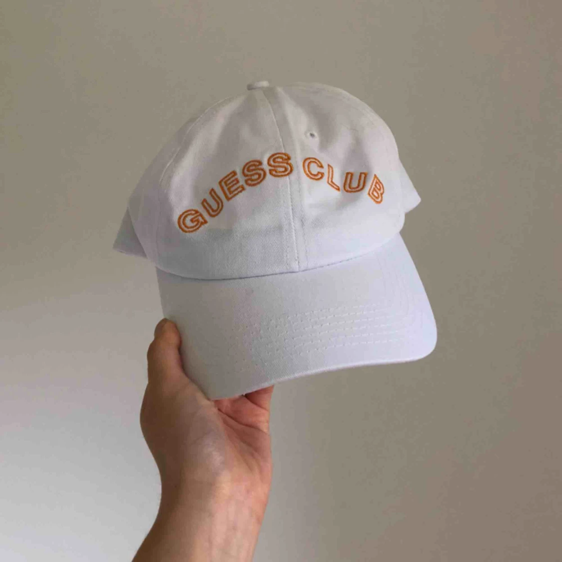 Vit keps med orange logotyp ”Guess Club” från Guess & A$AP Rocky kollektionen. Använd knappast 1 gång. Inkl frakt och kör gärna en meet up i Göteborg.