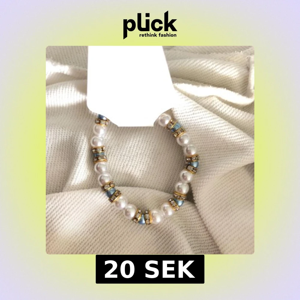 Ett jättegulligt pärlarmband med vita blåa pärlor, osen de guldiga har små diamanter i. aldrig använd