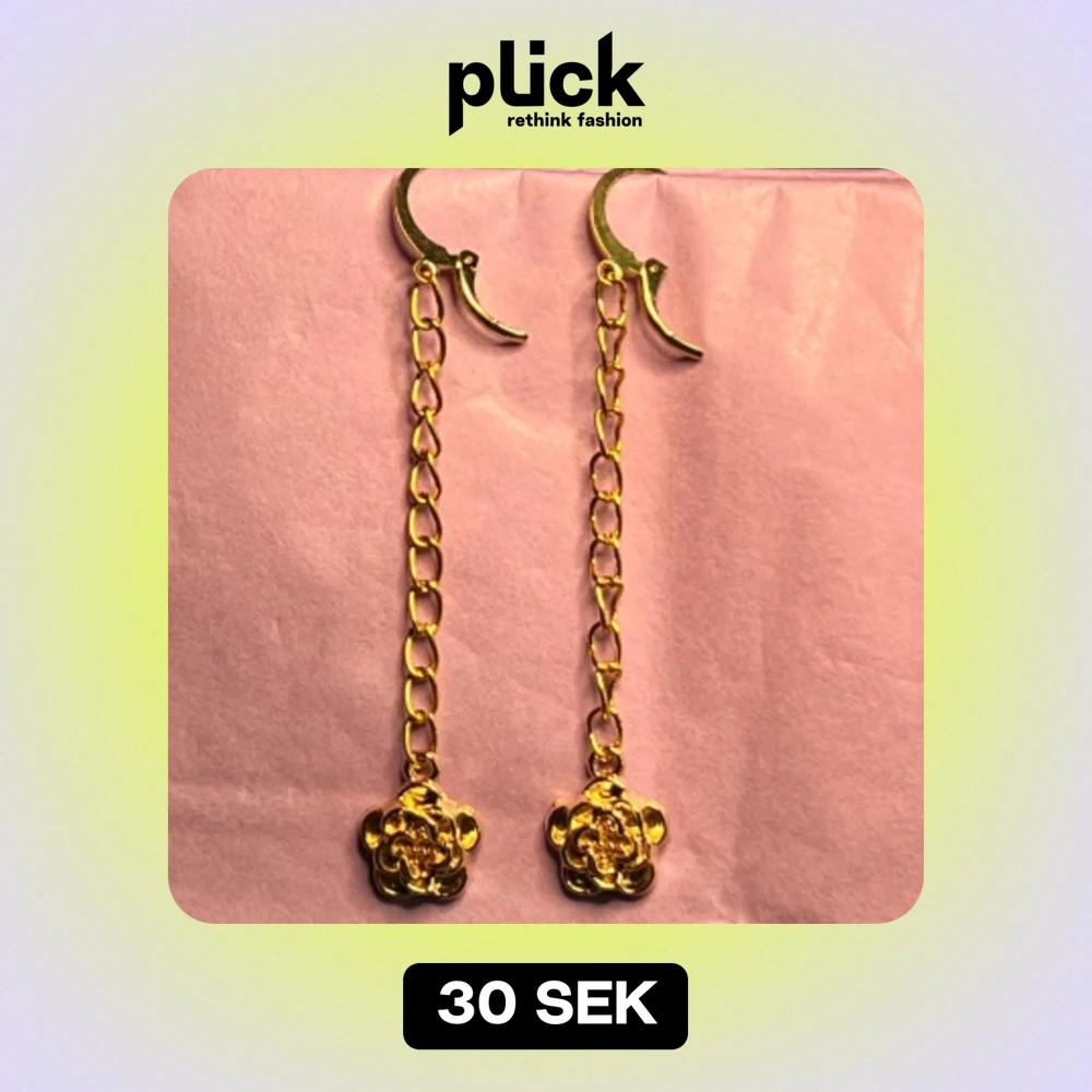 Guldiga örhängen med blomberlocker, gjorda av mig. I rostfritt stål💛