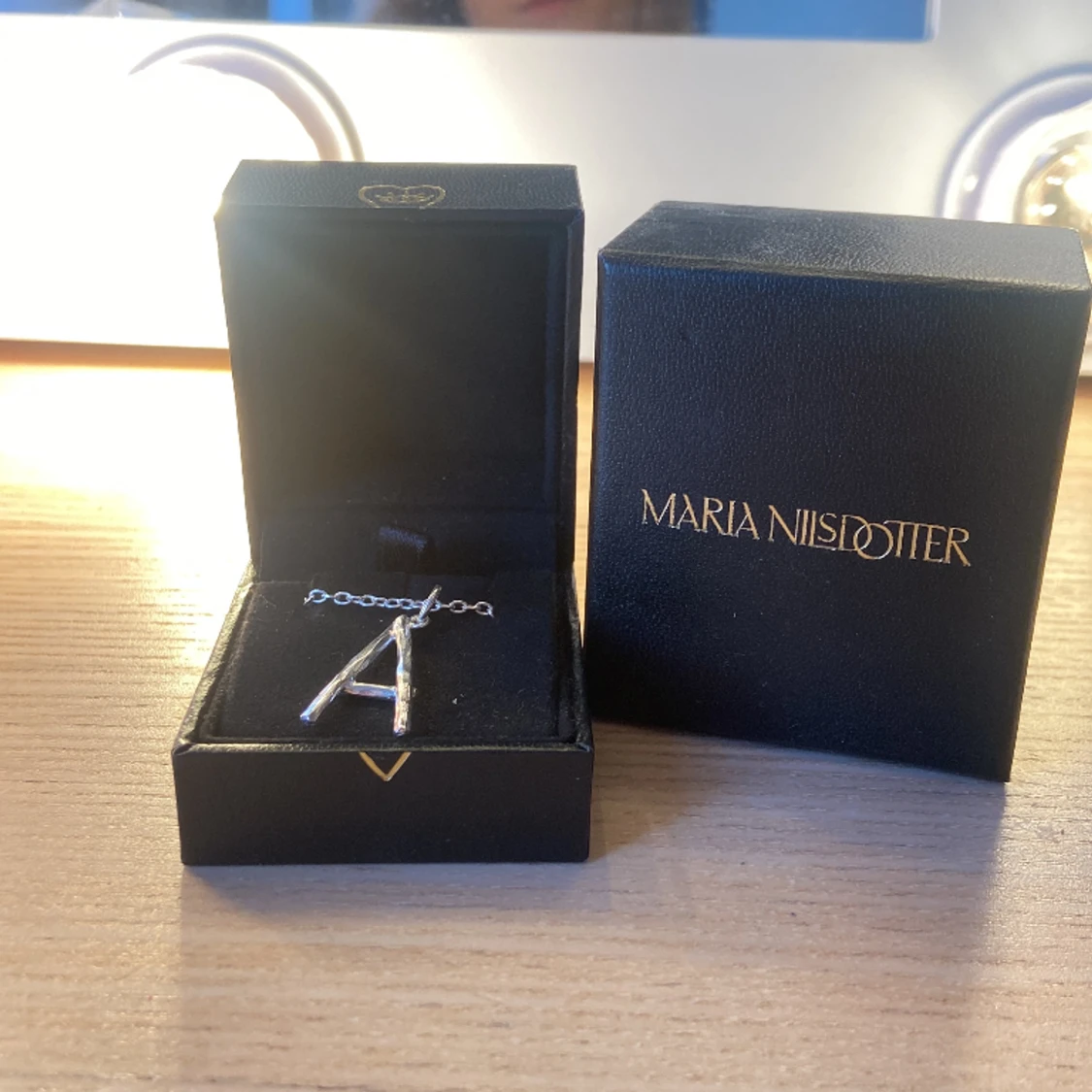Säljer mitt älskade A-halsband ifrån Maria Nilsdotter. Det e helt oanvänt och jag säljer pågrund av att jag bytte till guld. Kan också tänka mig att byta mot ett halsband i guld! Äktighets bevis finns!