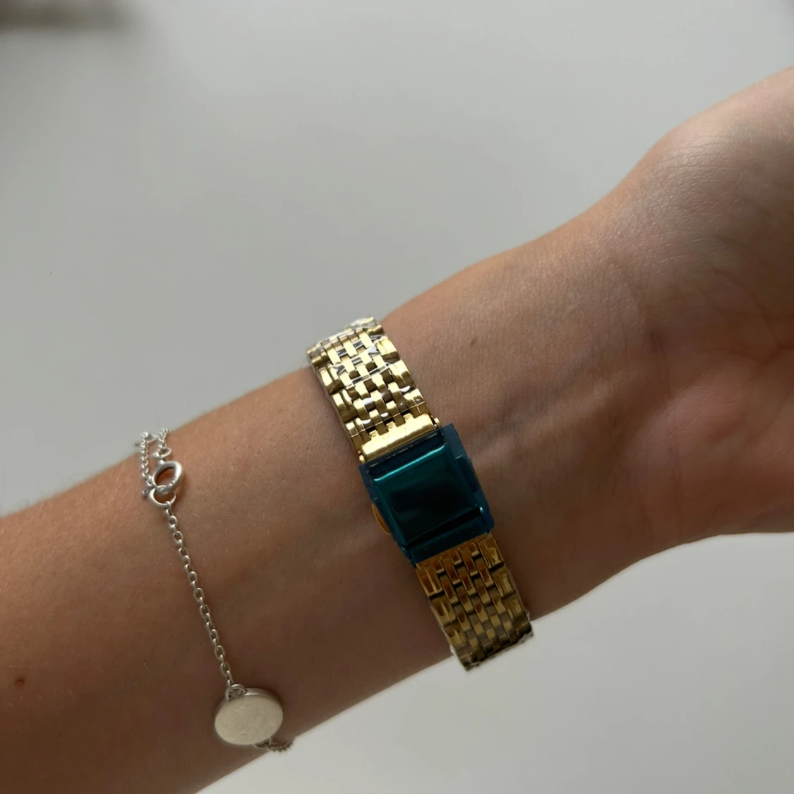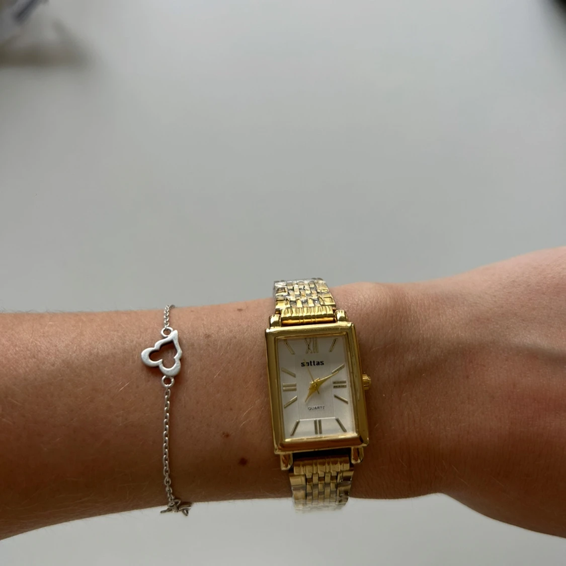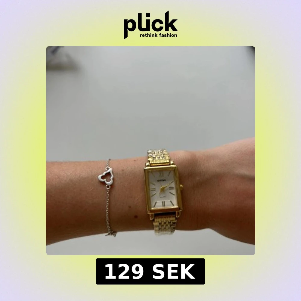 Guld klocka i rostfritt stål, plasten är kvar går att justera