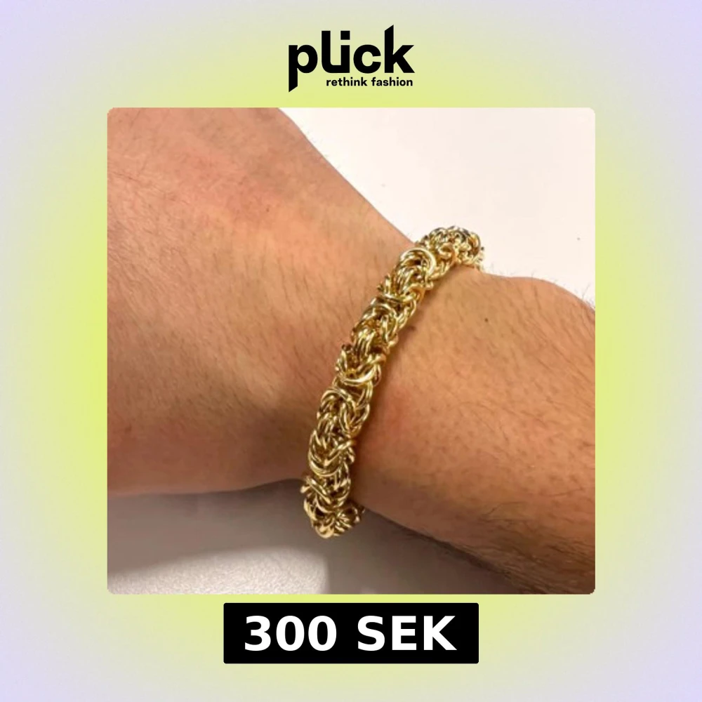 Elegant guldarmband med en intrikat flätad design. Perfekt för att ge en lyxig touch till din stil. Armbandet har en robust och glänsande finish som fångar ljuset vackert. Det är 19cm lång och 8mm bredd, det är äkta 18k guld planterat och rostfritt stål vilket betyder att du kan bada och duscha med det hur mycket du vill utan att det händer något med den
