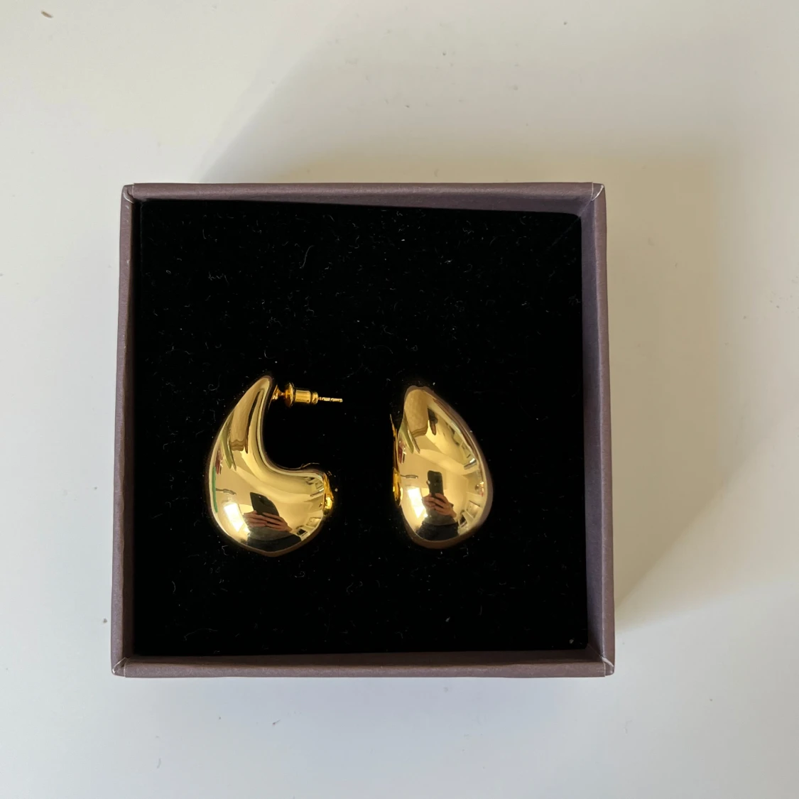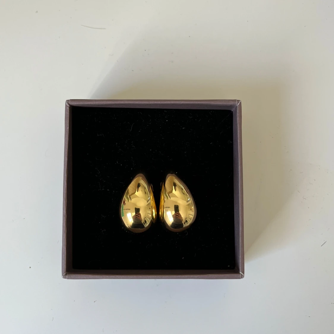 Guldiga droppformade örhängen