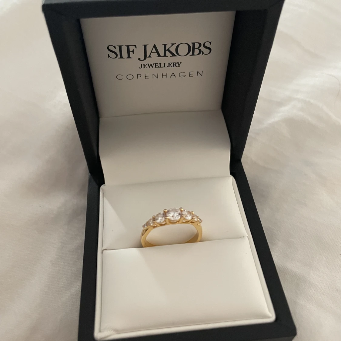 Guldpläterad 18 karat guld Vita zirkoner Storlek 52 Aldrig använd