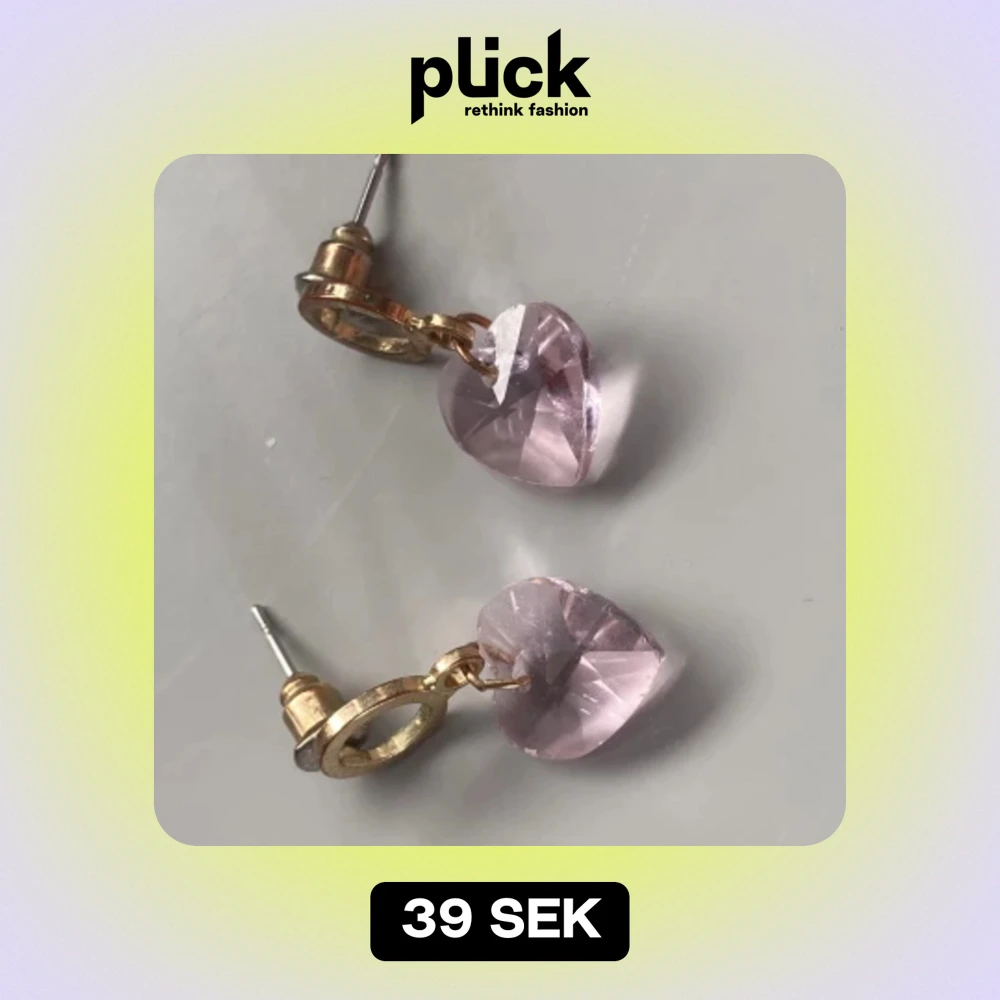 Guldiga örhängen med rosa gnistrande hjärtan. Köpta på en färja, därför osäker på märket. Pris kan självklart diskuteras!