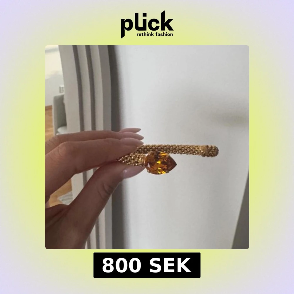 Unikt armband från Caroline Svedbom i guldton med pärlstruktur och en stor droppformad orange kristall. Armbandet är öppet och har märkets logga ingraverad på ena sidan. Perfekt statement piece för dig som vill sticka ut.