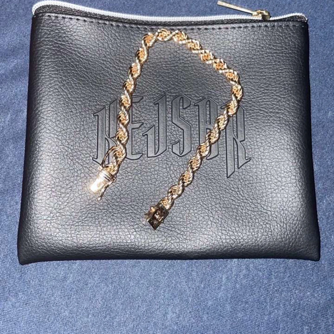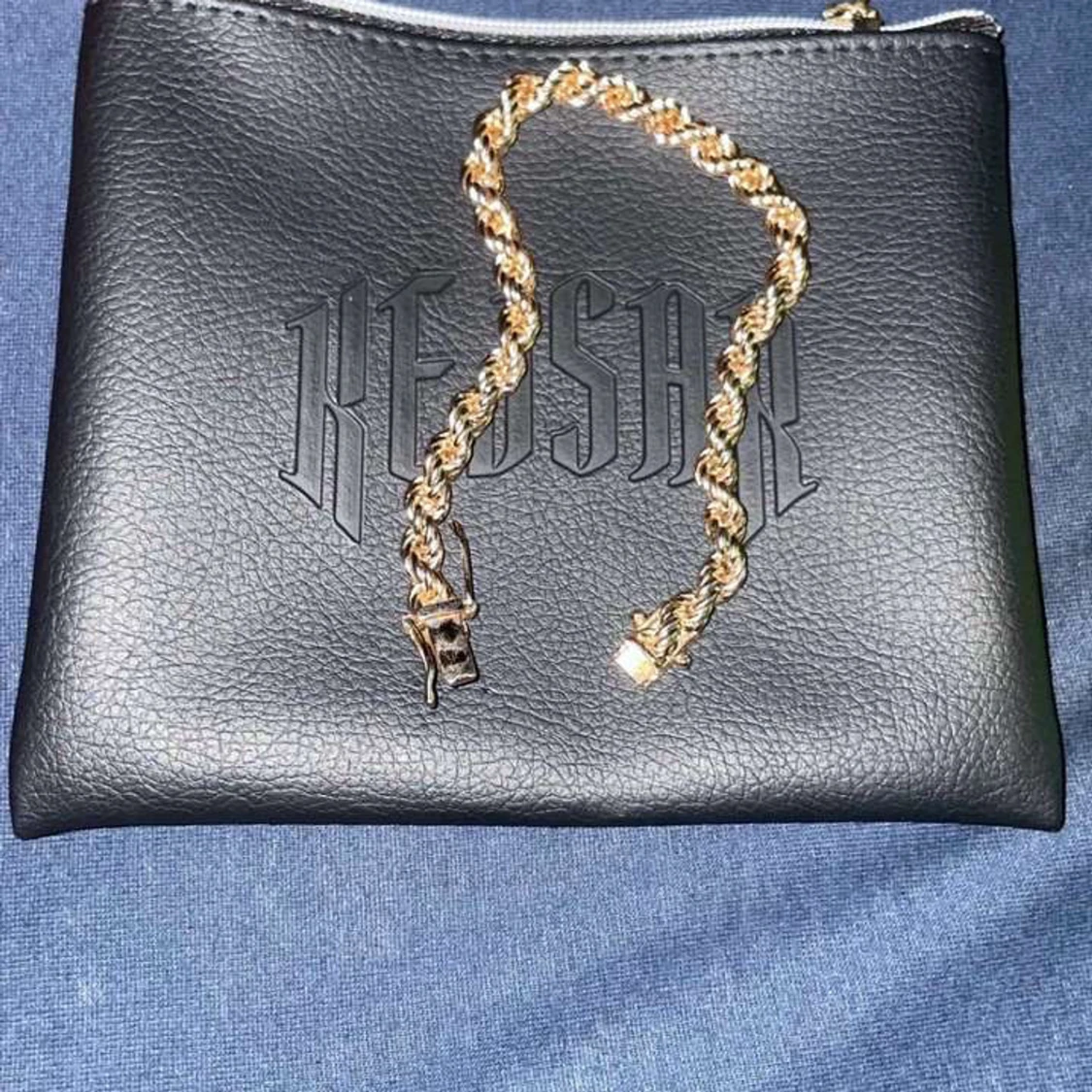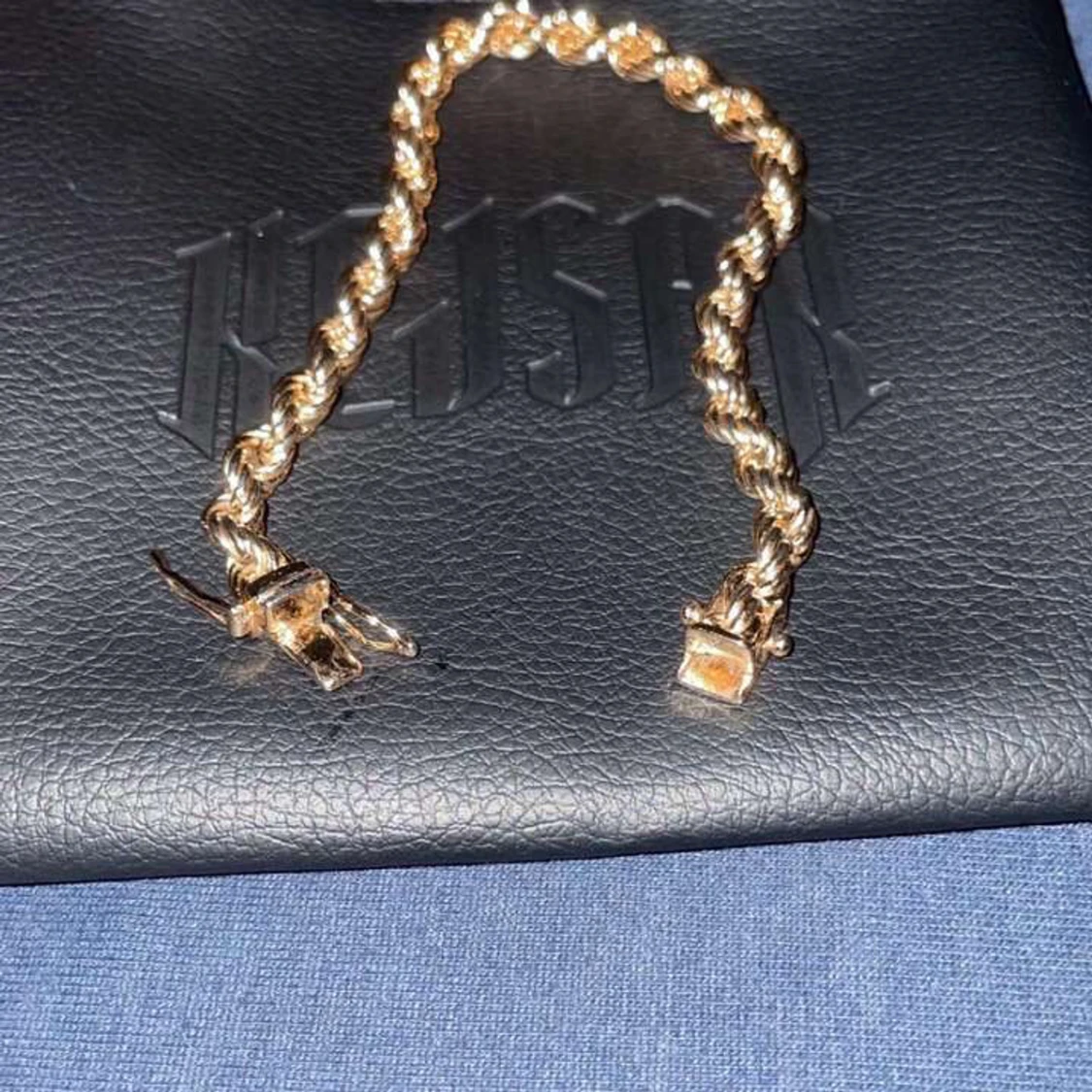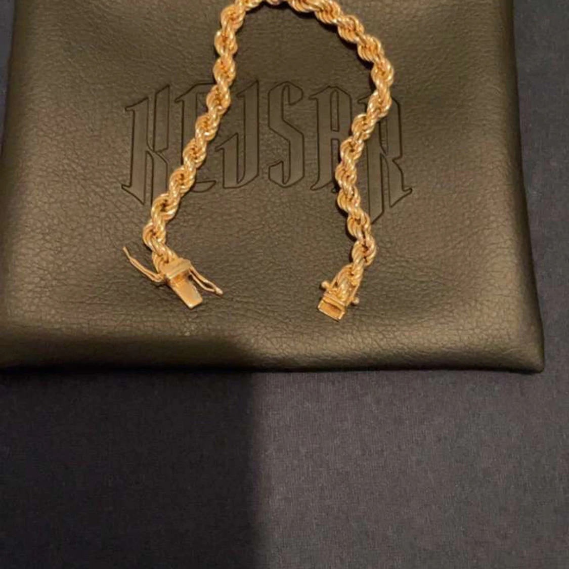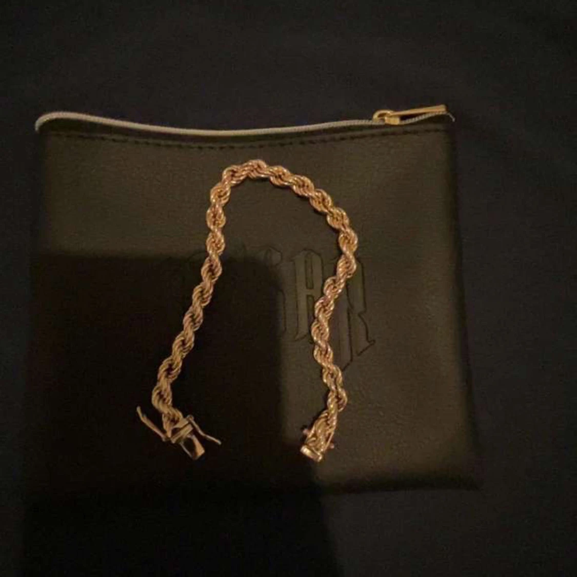 Snyggt guldarmband från Kejsar med en tvinnad design. Perfekt för att ge en elegant touch till din stil. Armbandet kommer i en praktisk svart förvaringsväska med dragkedja. Pris kan diskuteras