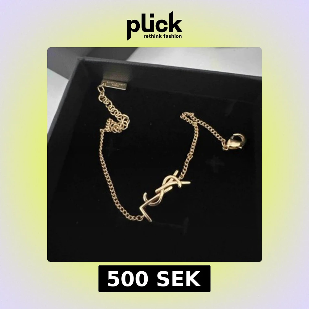 Snyggt guldarmband från Saint Laurent med den ikoniska YSL-loggan som detalj. Kedjan är tunn och elegant med ett klassiskt lås. Perfekt accessoar för dig som gillar lyxiga och stilrena smycken med designer-touch.
