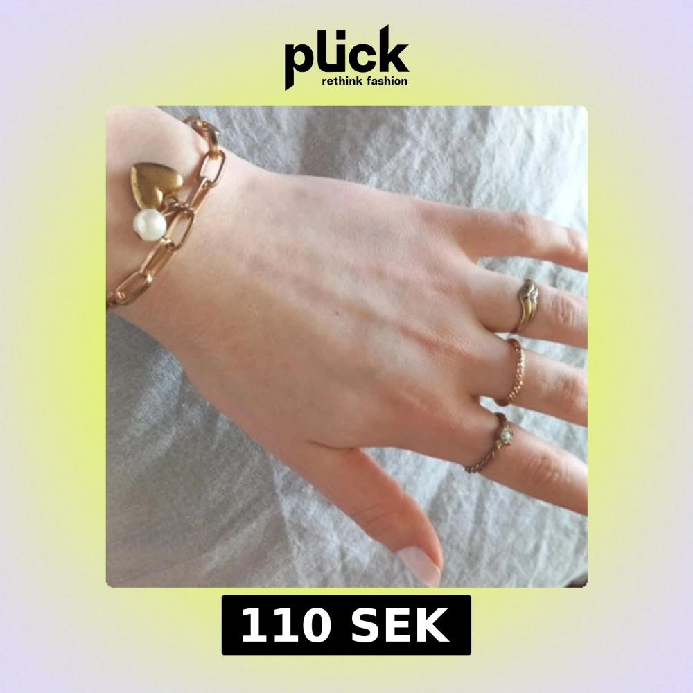 Säljer smyckerna som ett set. Guldarmband med ett hjärta och vit pärla. 3 ringar. Den på lillfingret är mycket mindre än dom andra 2. Om du inte vill köpa alla för 110 skriv till mig så ordnar vi det! 🩷