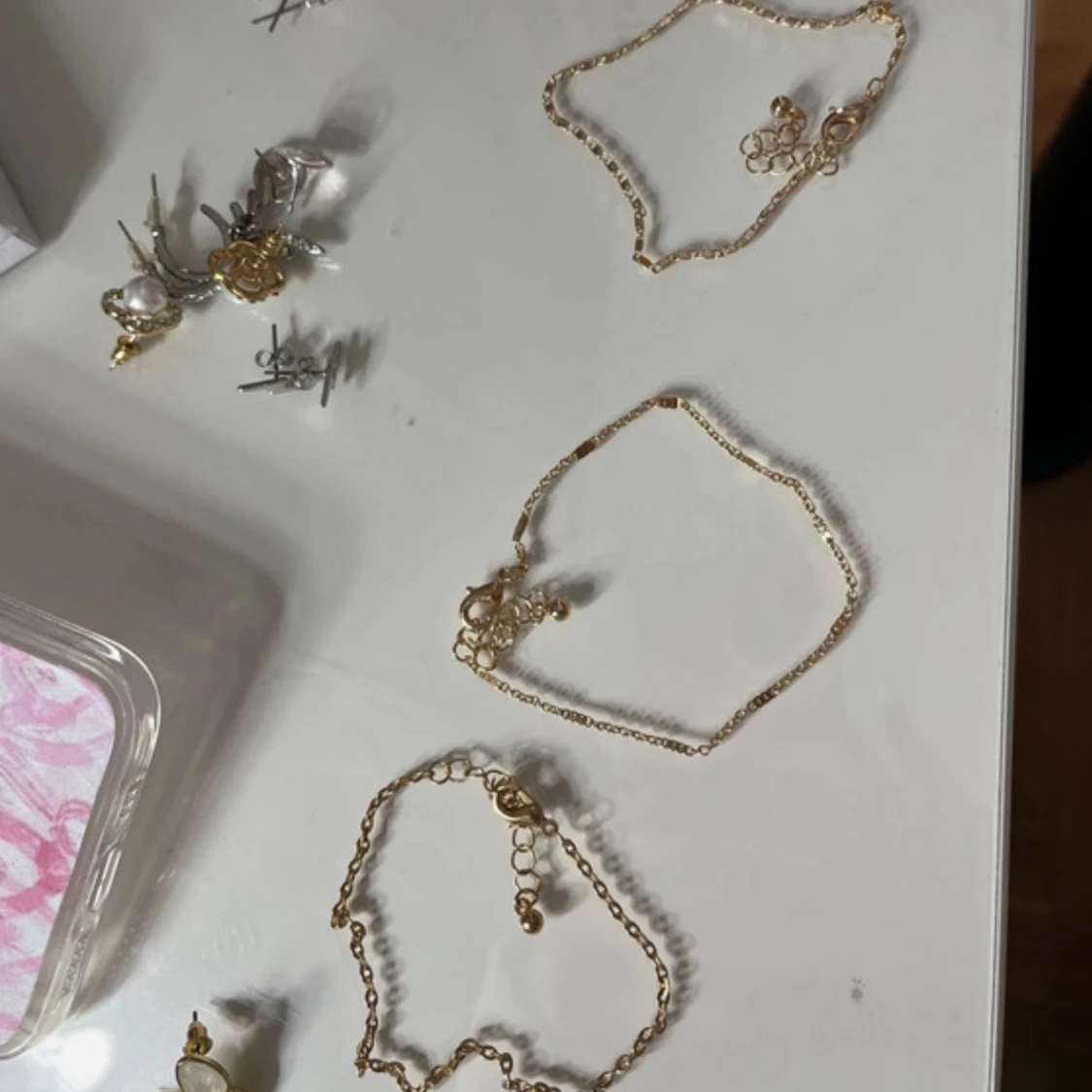 Säljer eleganta guldarmband med kedjedesign. Perfekta för att lägga till en touch av stil till din outfit. Armbanden har en justerbar längd och en fin glans som fångar ljuset vackert.