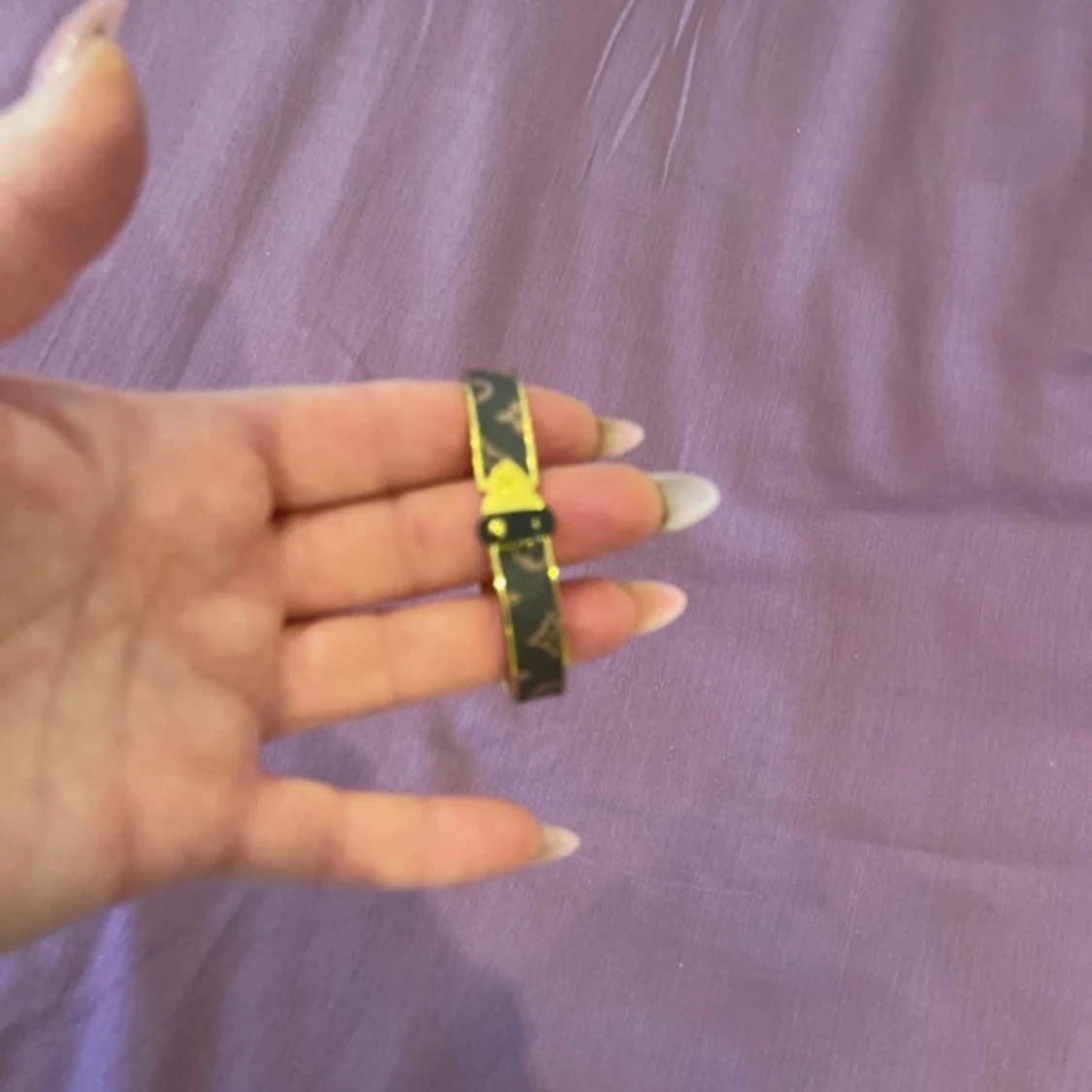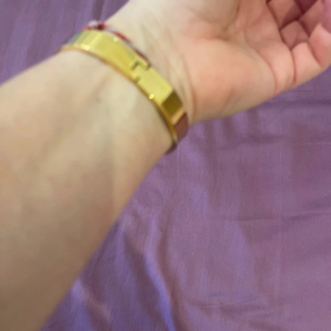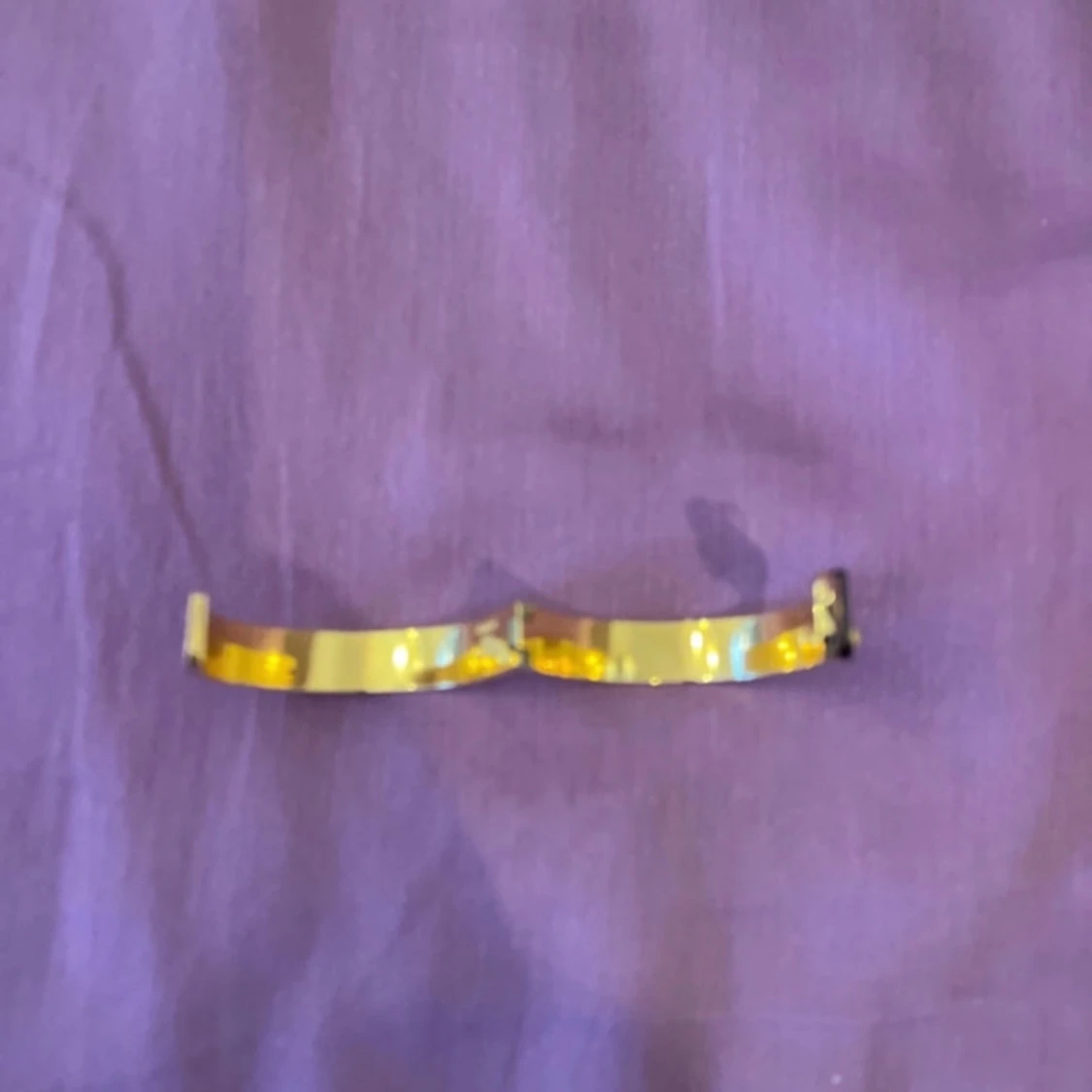 Snyggt guldarmband med ett unikt mönster. Armbandet har en elegant design och är perfekt för att ge en touch av stil till vilken outfit som helst. Det är lätt att bära och passar för både vardag och fest.