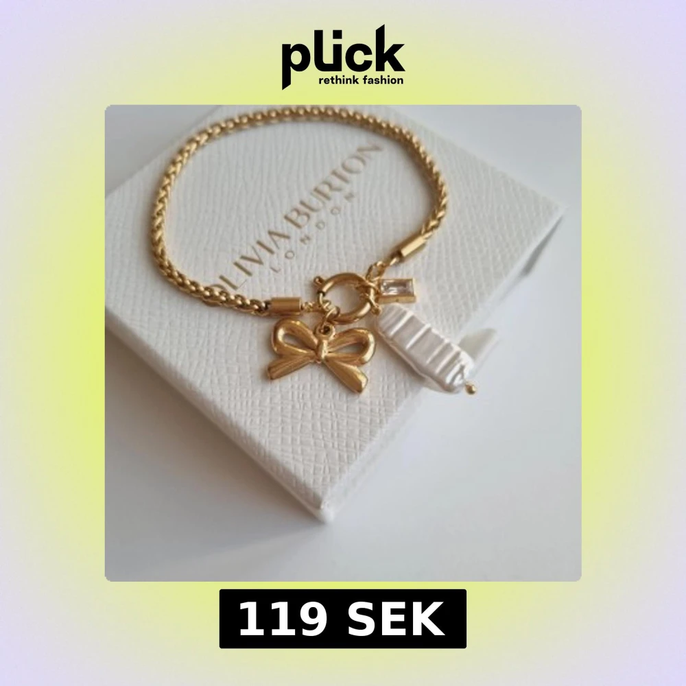 Charmigt guldarmband med en söt rosettberlock, en vit pärlberlock och en liten glittrig detalj. Kedjan är tvinnad och har en elegant finish som ger en lyxig känsla. Perfekt för dig som gillar detaljer och vill sticka ut. Lådan ingår ej.