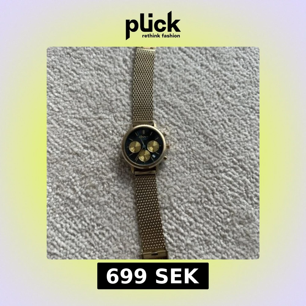 Stilren klocka från GANT med guldigt mesharmband och svart urtavla. Klockan har tre mindre urtavlor i guld och tydliga markeringar. Perfekt accessoar för att lyfta din outfit.