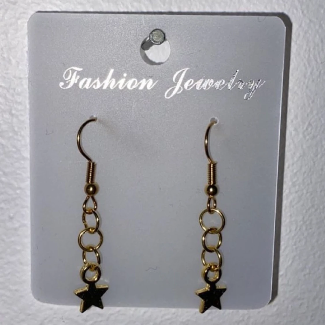 Örhängen med stjärnberlock och kedia, gjort själv. 20kr + 12 kr frakt. Finns 2 i lager just nu. (Nickel fria)