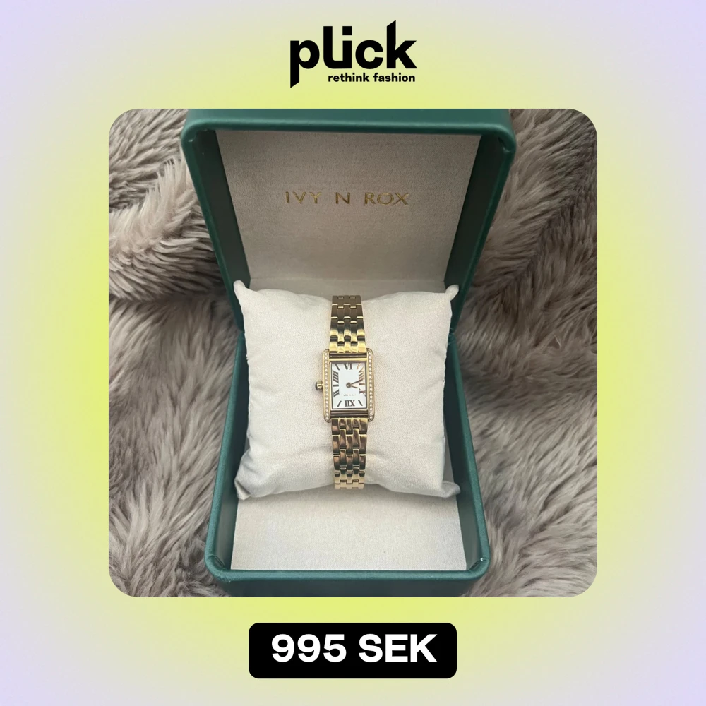Snygg guldfärgad smyckesklocka från Ivy N Rox med kvartsurverk. Klockan har en rektangulär urtavla med romerska siffror och ett elegant metallband i rostfritt stål. Perfekt för både vardag och fest!