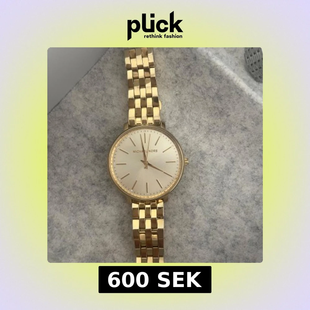 Stilren guldfärgad klocka från Michael Kors med klassisk rund urtavla och länkarmband i metall. Urtavlan är ljus med minimalistiska markeringar och diskret logga. Perfekt accessoar för dig som gillar en clean och elegant look.