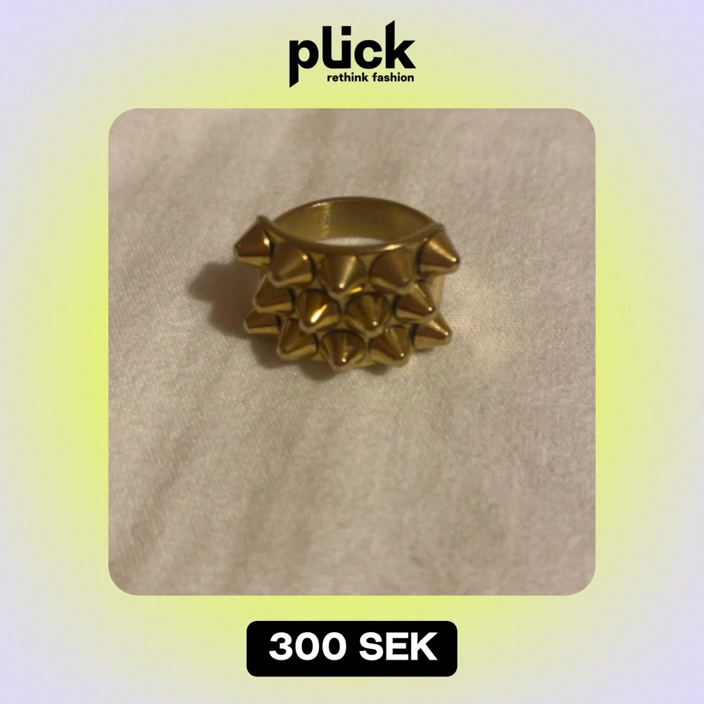 Säljer en guldfärgad ring från Edblad. Ringen har ett unikt design med flera små nitar som ger den en edgy look. Perfekt för att ge din outfit lite extra attityd! Kommer i originalförpackning.(Stockholmsstil)