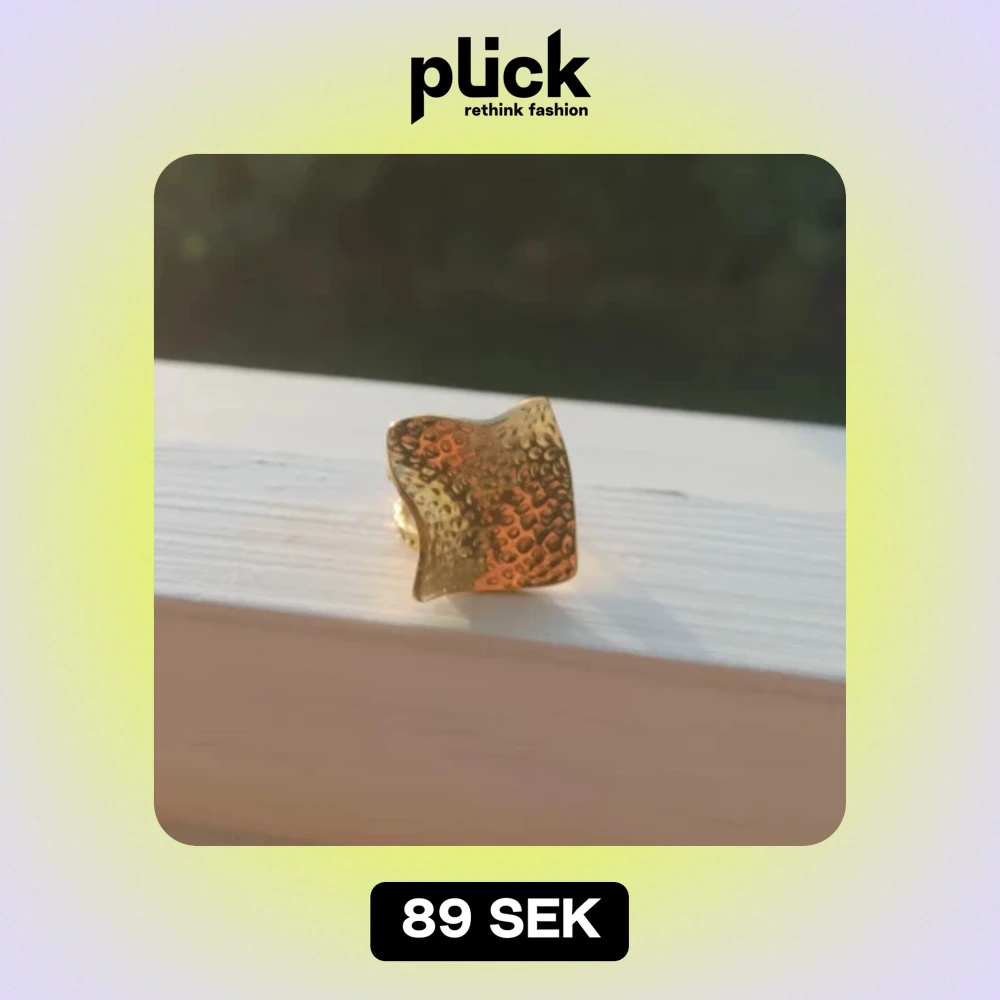 En guldfärgad ring med en unik, texturerad design. helt oanvänd. justerbar storlek