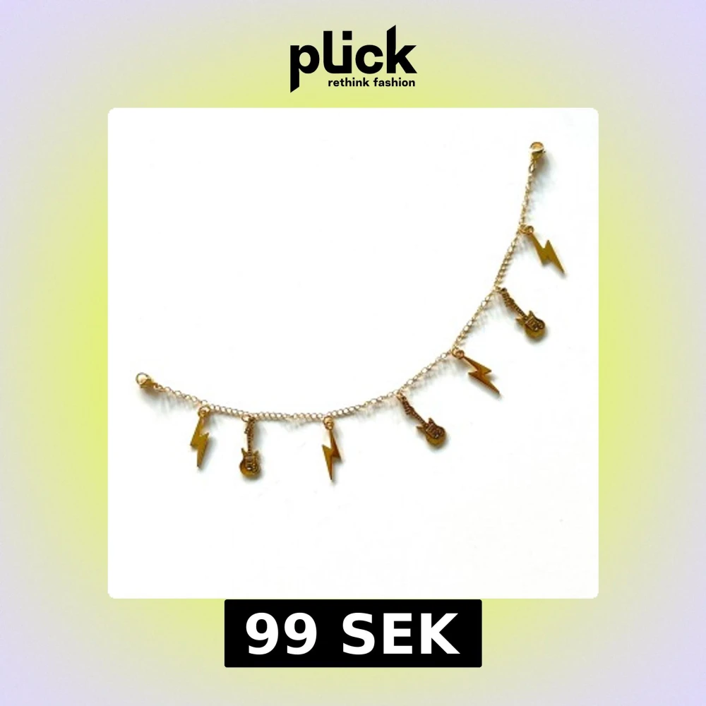 Guldfärgat handgjort accessoarsmycke med hängande gitarrer och blixtar ⚡️🎸Häng på väskan för en cool rockig touch på outfiten 🎸⚡️
