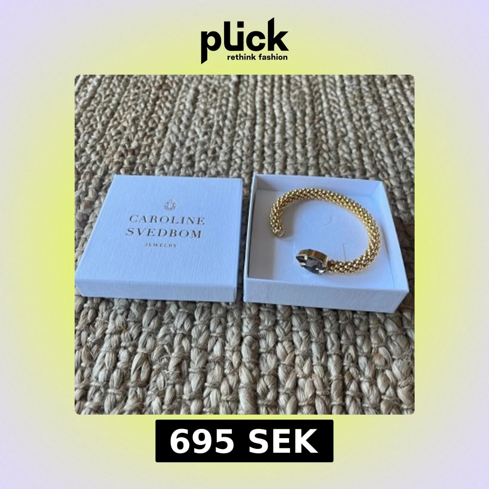 Helt oanvänd! Säljer ett exklusivt guldfärgat armband från Caroline Svedbom med en stor, droppformad kristall i färgen greige. Armbandet har en elegant och lyxig design som verkligen sticker ut. Nypris 995kr.