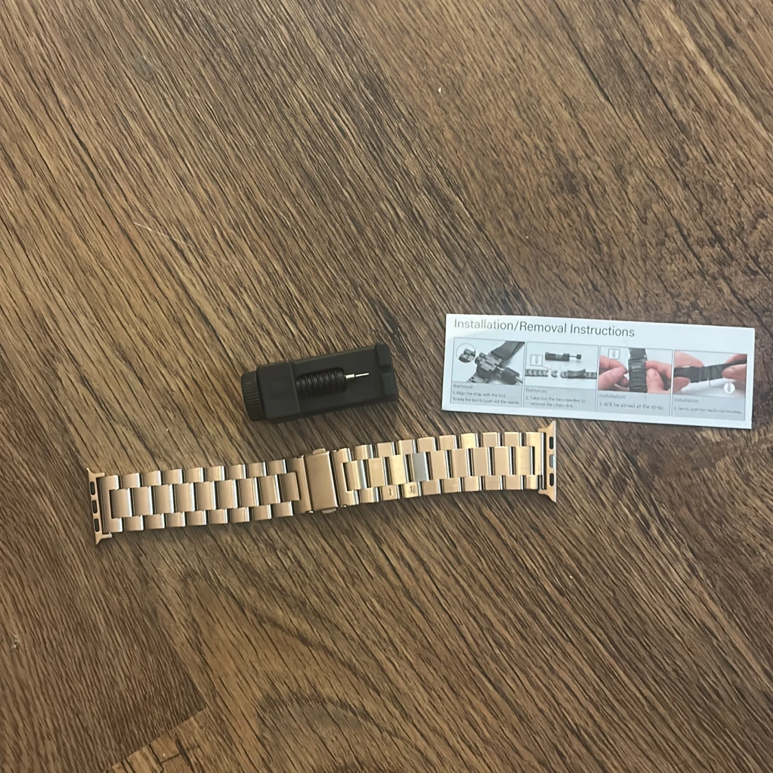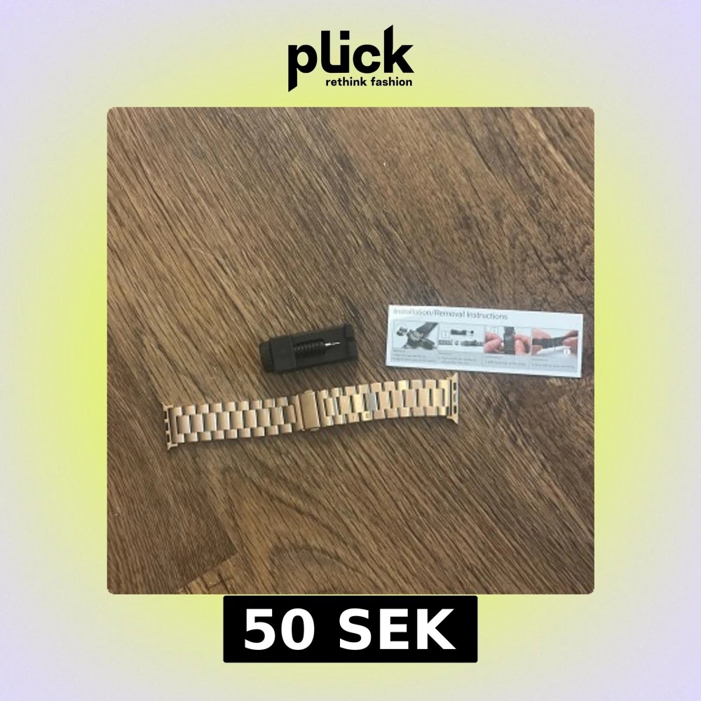 Snyggt guldfärgat metallarmband till klocka med klassisk länkdesign. Armbandet har en viklås och kommer med verktyg för enkel justering samt instruktioner. Perfekt för dig som vill ge din klocka en lyxig och modern look. 38/40/41 aldrig använd
