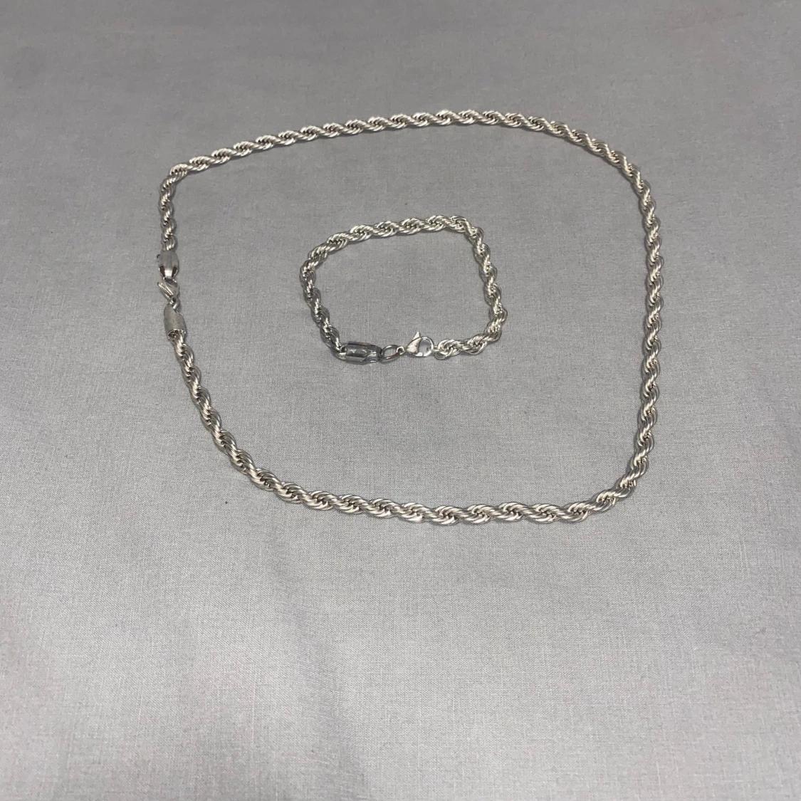 Snyggt set med ett silverfärgat halsband och matchande armband i tvinnad design. Perfekt för att ge en stilren touch till din outfit.