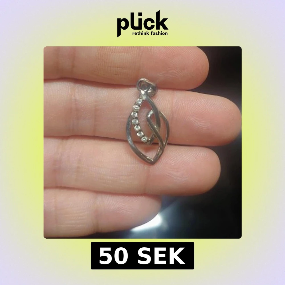 Snyggt hängsmycke i äkta silver med en öppen, bladliknande form och infattade glittrande stenar på ena sidan. Modern och stilren design som passar perfekt till en kedja. Märkt 925 för äkta silver.