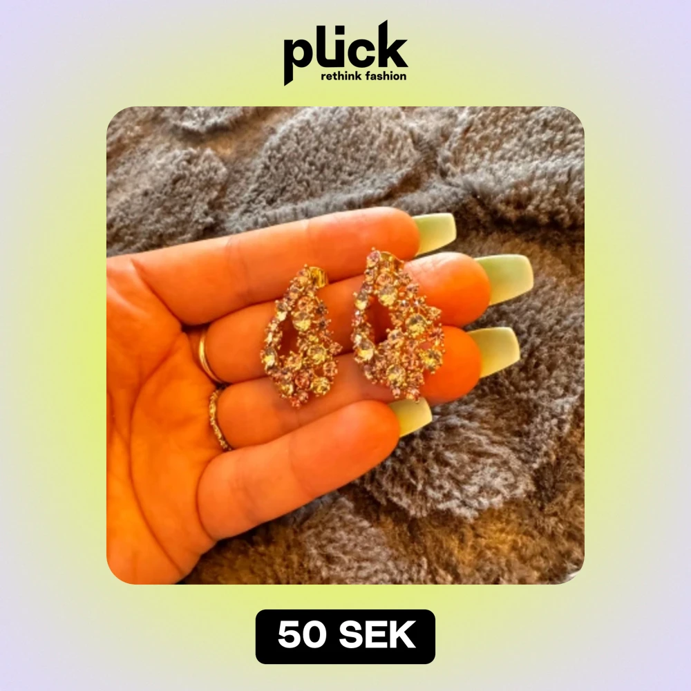 Säljer ett par superfina örhängen i guld med massor av glittriga stenar. De är formade som droppar och är perfekta för att ge lite extra bling till din outfit. Passar perfekt till fest eller andra speciella tillfällen. De är i nyskick kostar 270