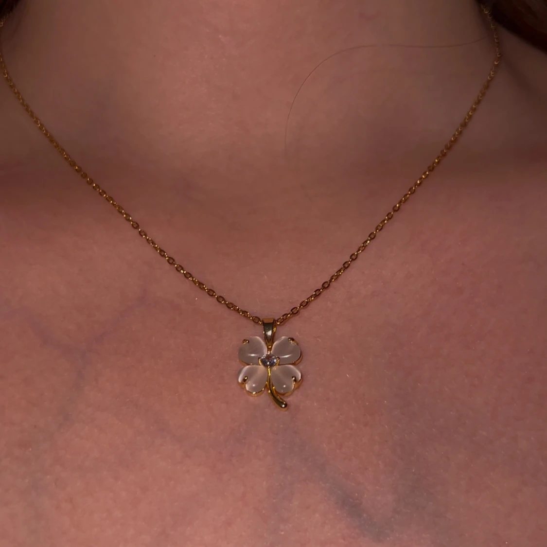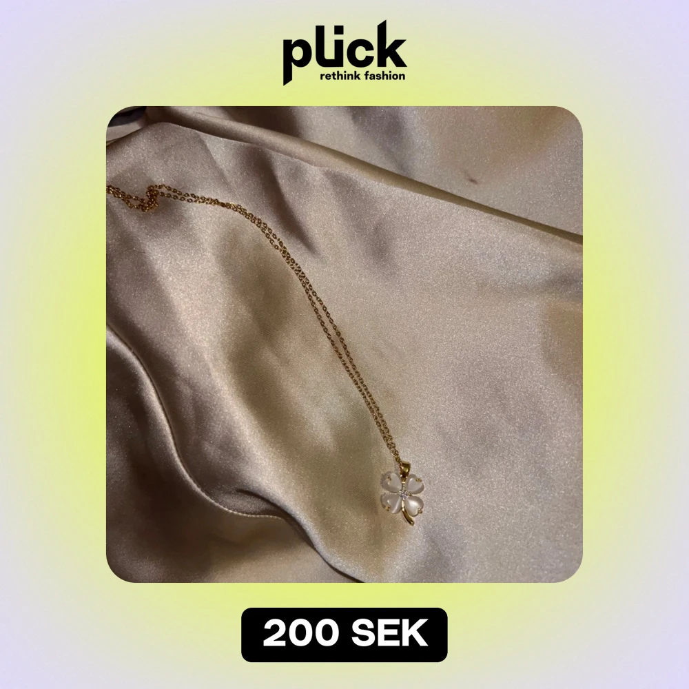 Säljer ett elegant halsband med en vacker fyrklöverberlock i genomskinligt material. Perfekt för att ge lite extra tur till din outfit! Kedjan är tunn och smidig, vilket gör den bekväm att bära hela dagen. Passar både till vardags och festliga tillfällen.