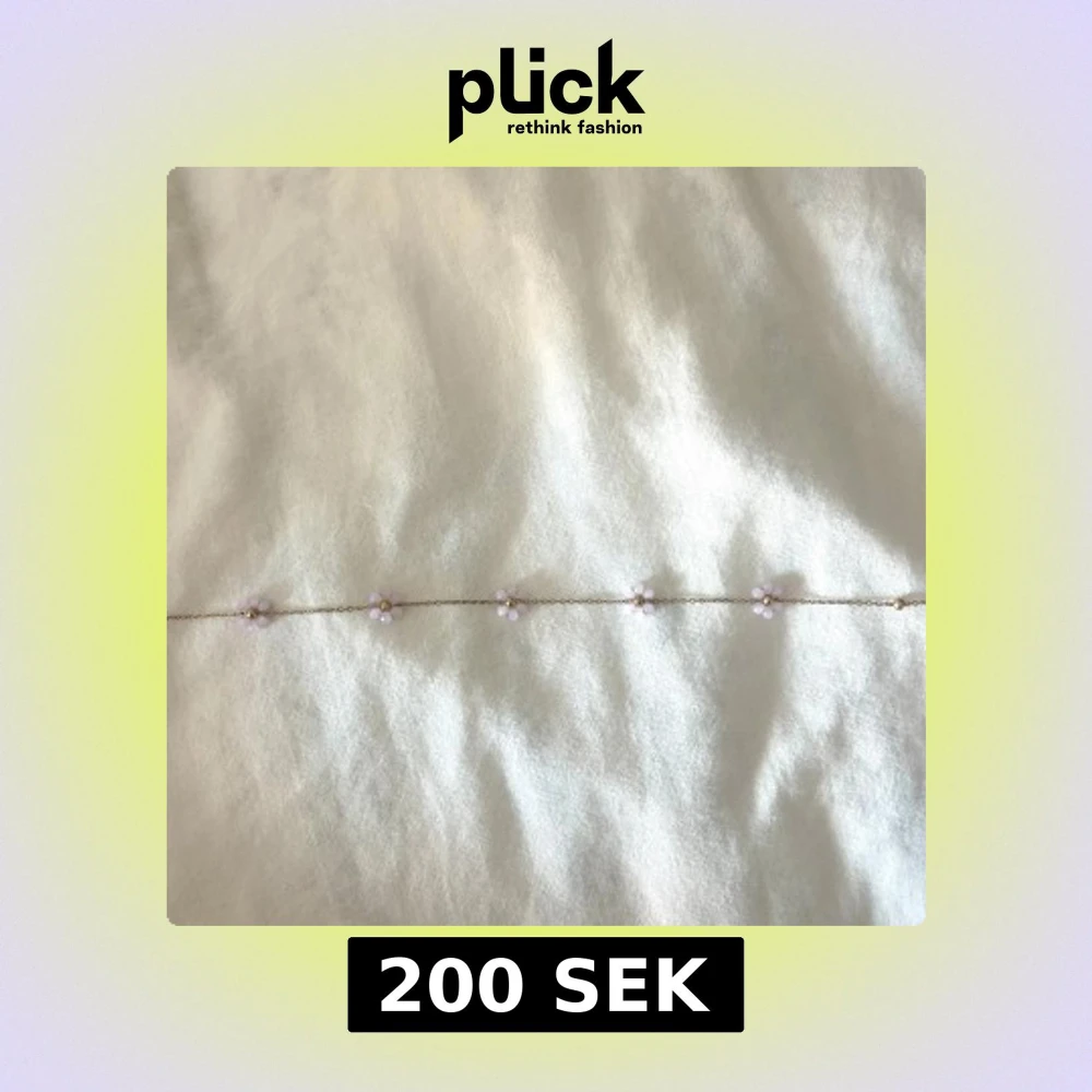 Superfint halsband med tunn guldfärgad kedja och små rosa blommor av pärlor jämnt utspridda längs kedjan, justerbar längd med karbinlås (stainless steel)