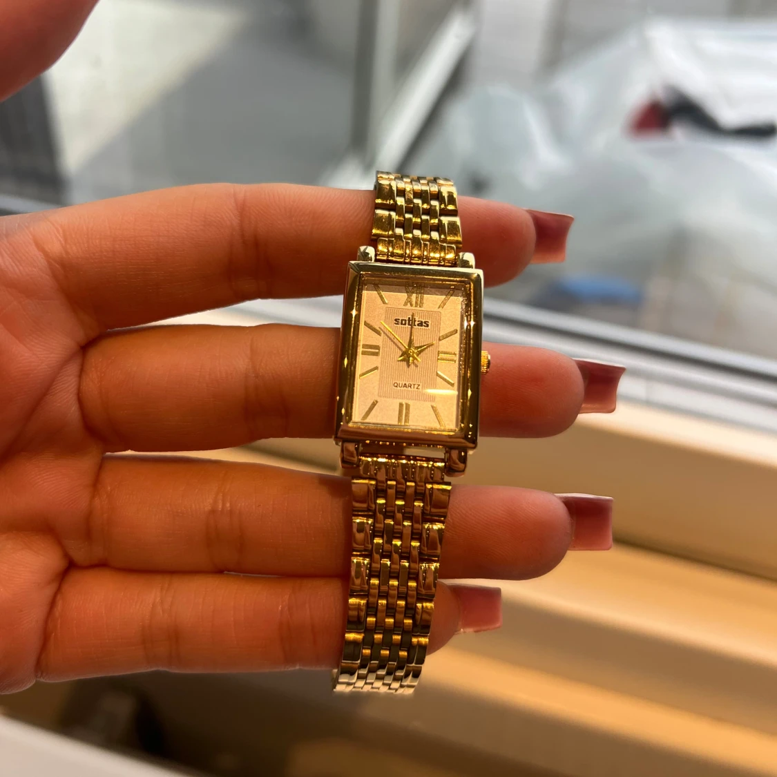 Snygg klocka från Sottas med rektangulärt ur och klassisk länk i guldton. Klockan har romerska siffror på urtavlan och en elegant, tidlös design som passar perfekt till din stil. Batteriet behöver bytas! Stainless steel