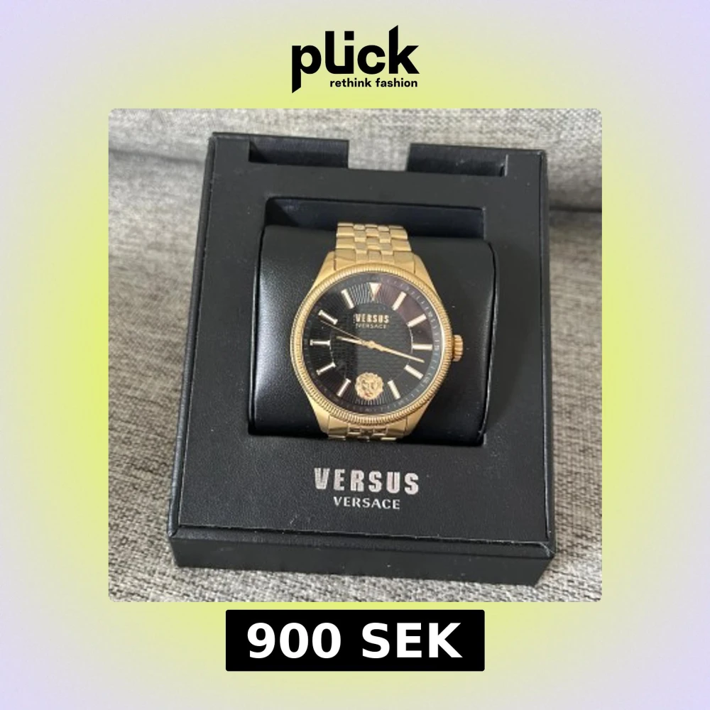 Snygg klocka från Versus Versace med guldig länk och svart urtavla. Klockan har klassisk rund form, detaljer i guld och Versus-logga med lejonmotiv på urtavlan. Kommer i originalbox med garantikort och förpackning. Perfekt accessoar för att lyfta din stil.