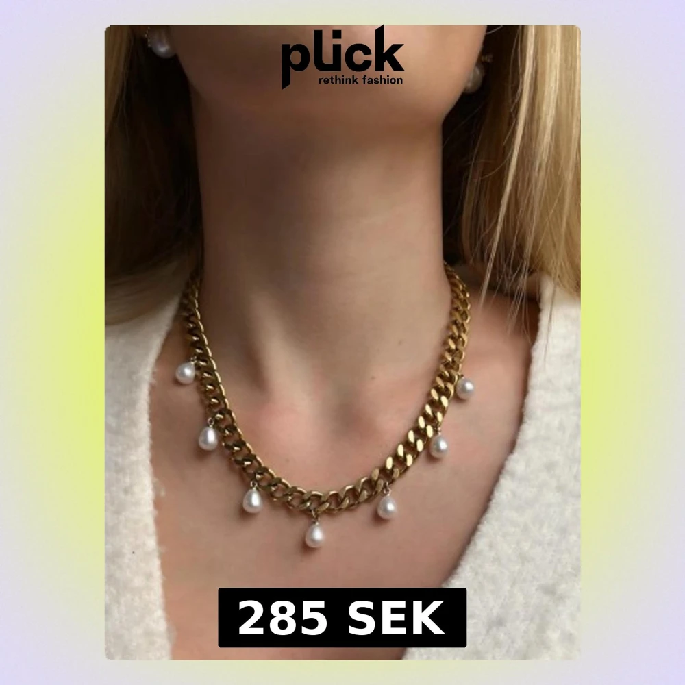 Matchande örhängen finns i en separat annons Finns även i silverfärg Material: 18K guldplätering på rostfritt stål Bredd: 9 mm Längd: 38-43cm Nickelfria och handgjorda.