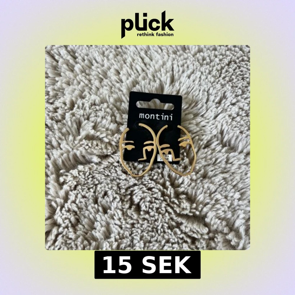 Unika örhängen från Montini i guldigt metall med coolt ansiktsmotiv. Perfekt statement-accessoar för dig som vill sticka ut och addera lite edge till din look. Säljs i par och har en modern, konstnärlig design. Helt oanvända med prislapp