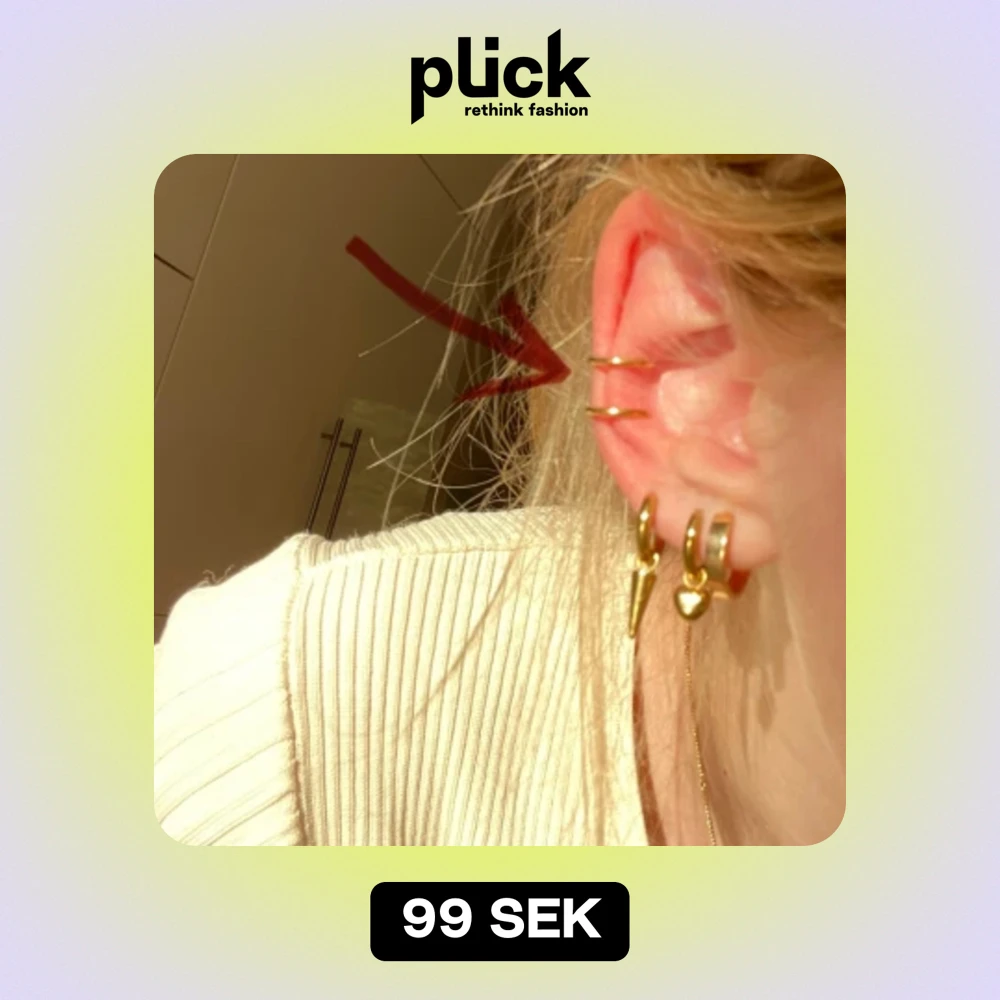 Här säljs två guldiga earcuffs med dubbla ringar på varje. Dvs. Om man har båda två på sig samtidigt ser det ut som 4 extra piercings. Från Timi of Sweden. Pris kan självklart diskuteras!