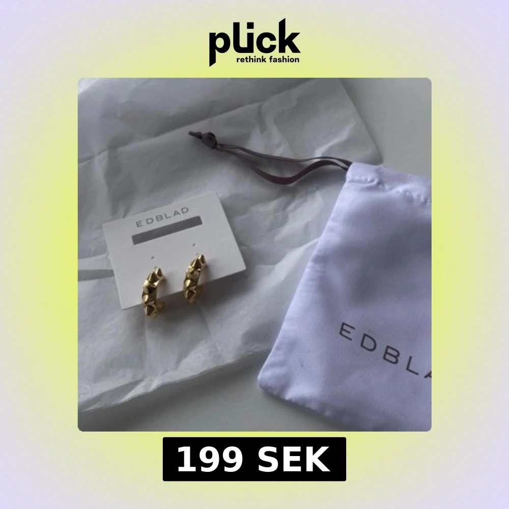 Säljer ett par snygga guldiga örhängen från Edblad med coola nitar. De är halvcirkelformade och ger en edgy känsla till din stil. Kommer med originalpåse. Perfekta för att lyfta vilken outfit som helst!