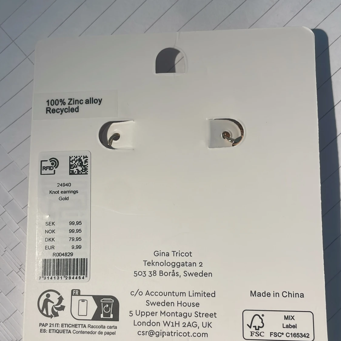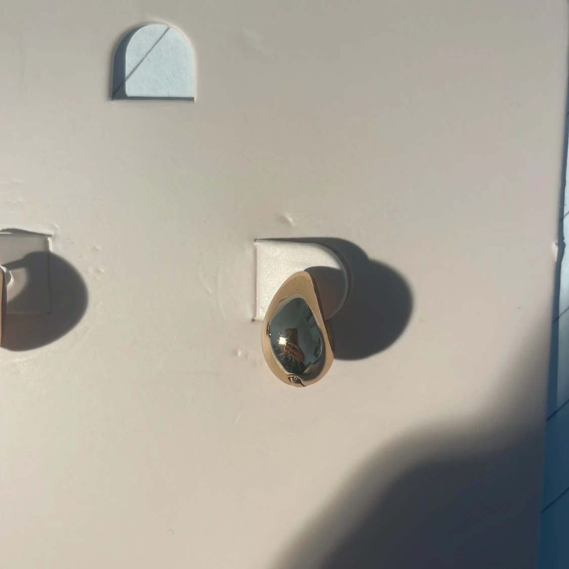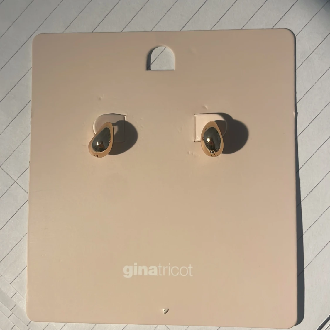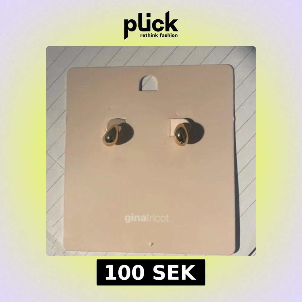 Snygga droppformade örhängen i guldig färg från Gina Tricot. De har en modern, blank yta och är tillverkade av återvunnen zinklegering. Perfekta för att ge din look en stilren touch.