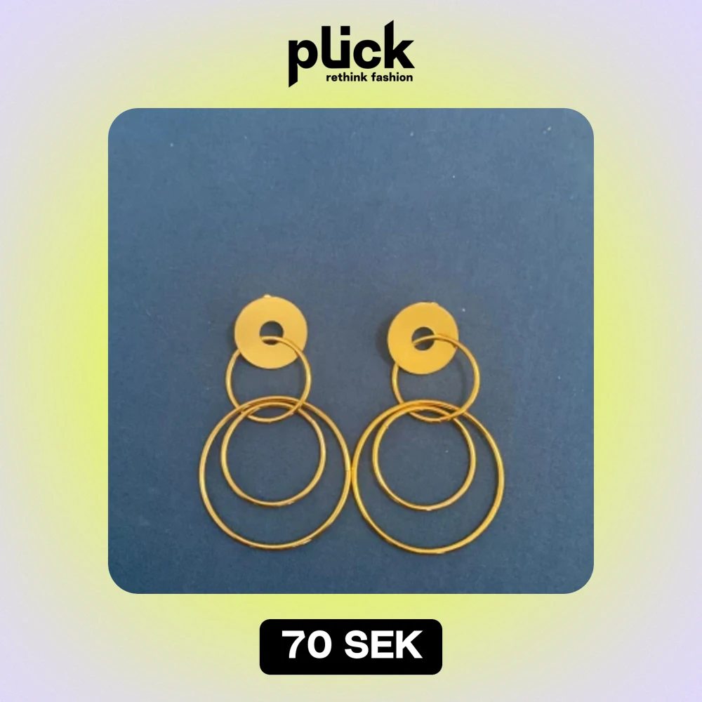 Snygga och trendiga guldiga örhängen med flera cirklar i olika storlekar. Perfekta för att ge en extra touch till din outfit, oavsett om det är för en fest eller en utekväll. De har en modern och stilren design som verkligen sticker ut!