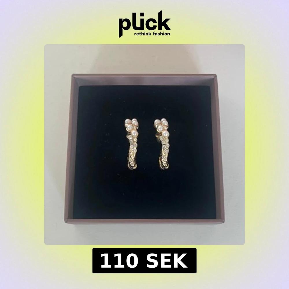 Snygga guldiga örhängen i halvbåge med vita pärlor och glittrande stenar. De har en lyxig känsla och passar perfekt om du vill sticka ut lite extra. Örhängena är lätta att bära och ger en elegant touch till din stil.