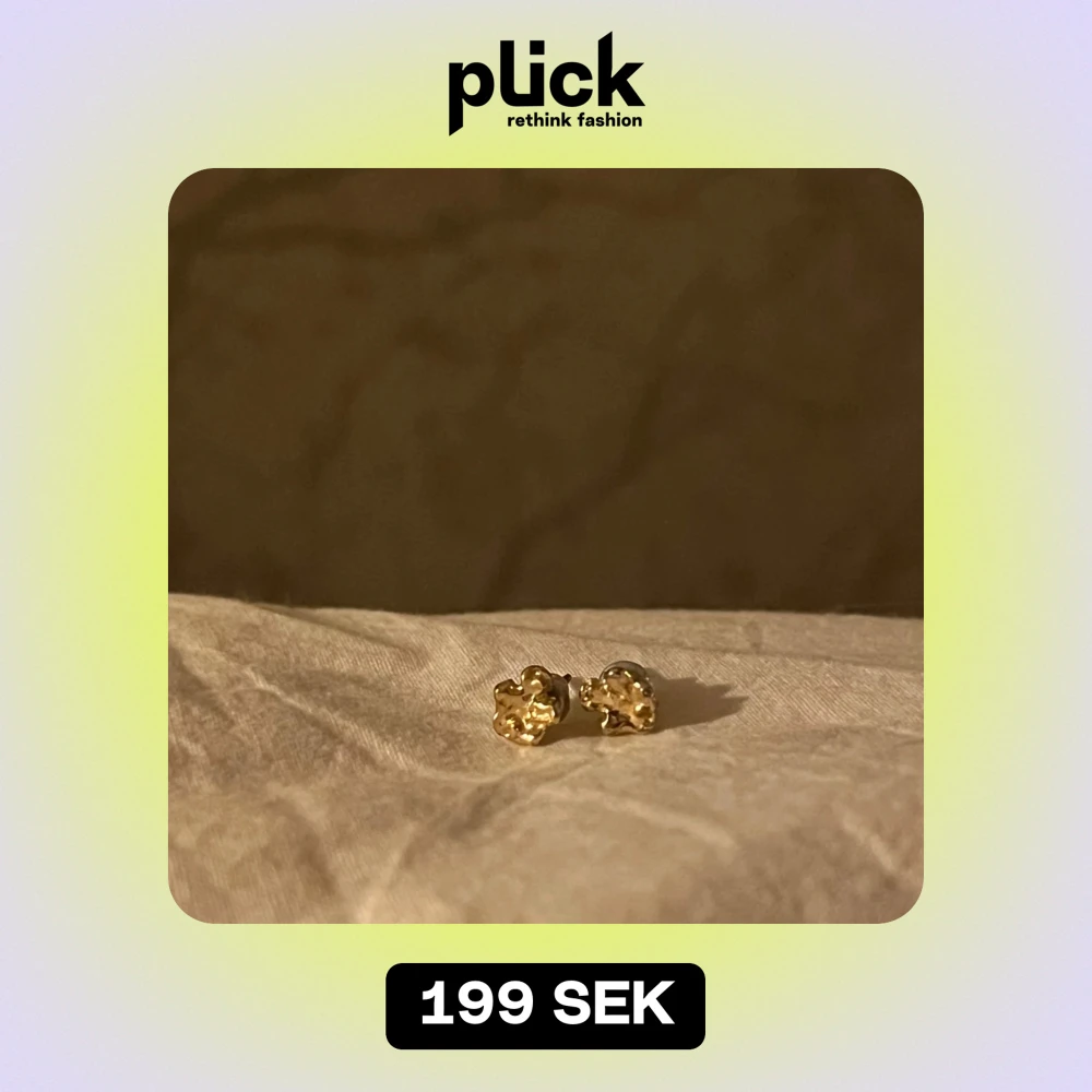 Säljer ett par eleganta guldiga örhängen med gnistrande stenar. Perfekta för att ge en touch av glamour till vilken outfit som helst. De är små och diskreta men ändå iögonfallande. Passar både till vardags och festliga tillfällen.