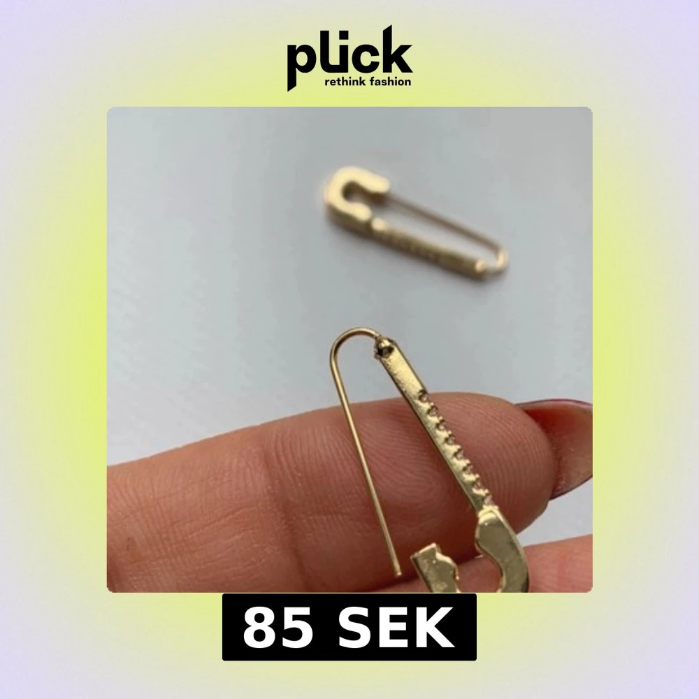 Unika örhängen i form av säkerhetsnålar i guldig färg, dekorerade med små glittrande stenar längs ena sidan. Perfekt accessoar för dig som vill sticka ut med en edgy och trendig stil. Säljs som par.